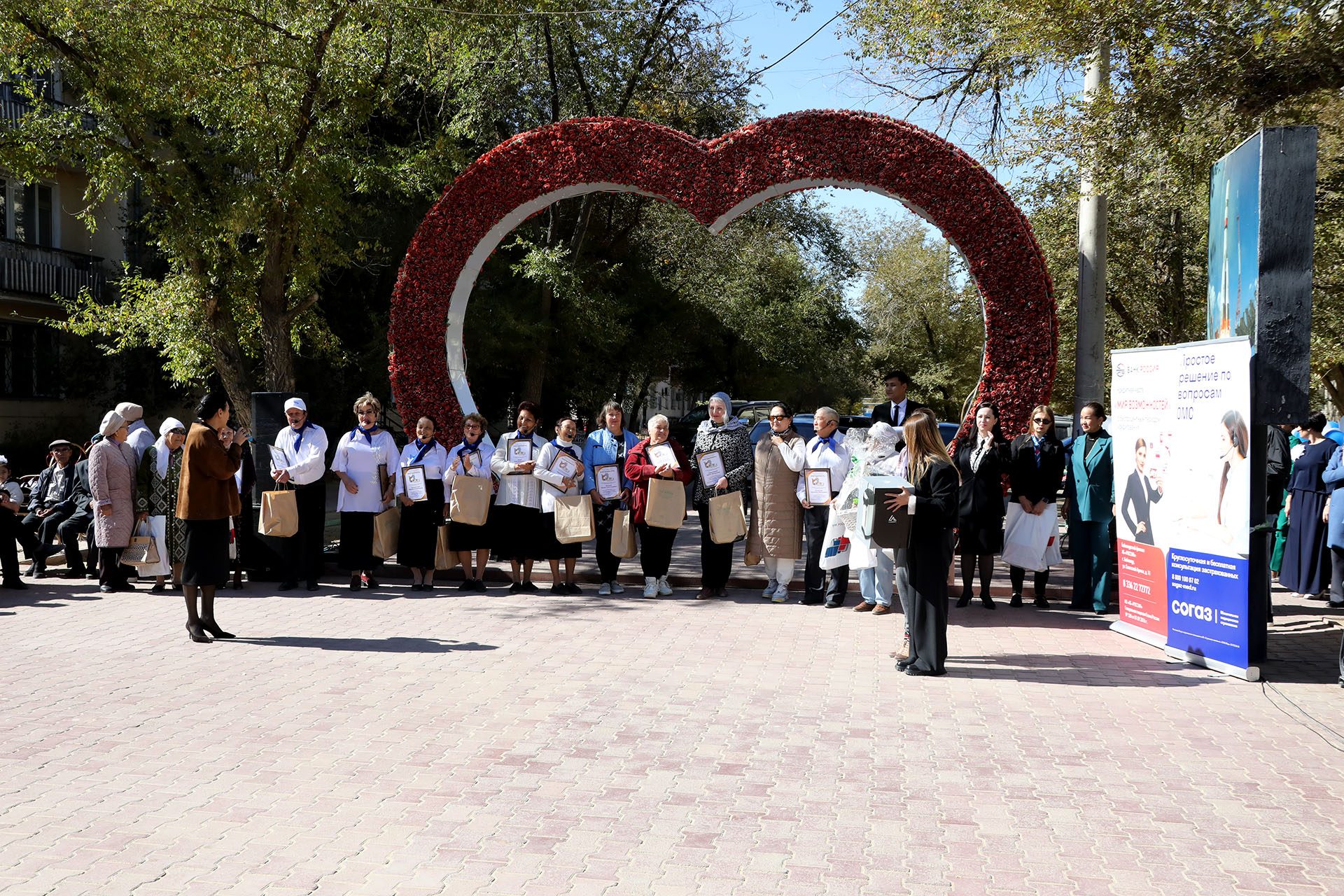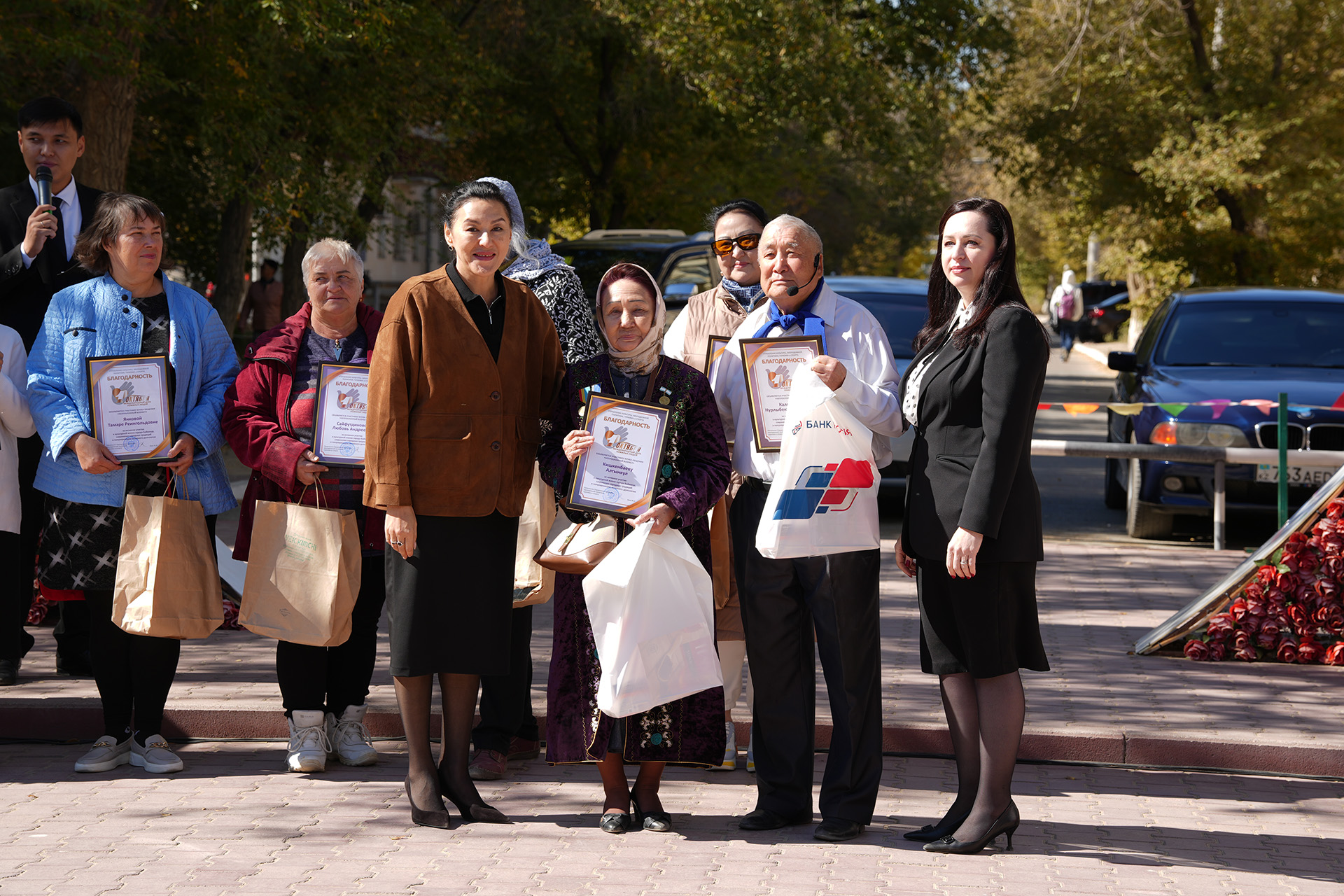 Жанар Ким наградила участников клуба общения «Непреклонный возраст» благодарностями в честь Дня пожилых людей за активный вклад в культурную жизнь города Байконура, которым также были вручены подарки, подготовленные Акционерным Банком «РОССИЯ» и кафетерием «VEK Kimchi».