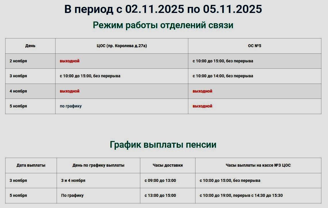 Режим работы отделений связи и график выплаты пенсий представлены на картинке.