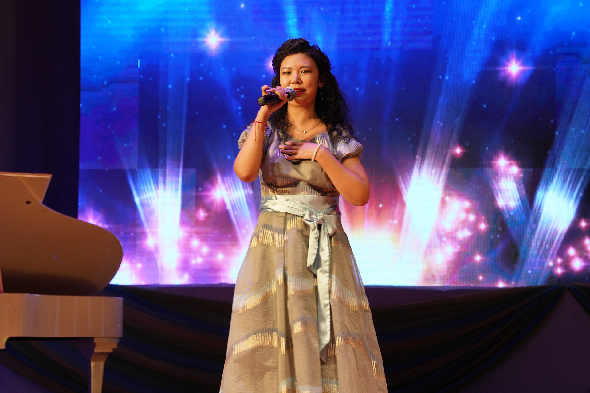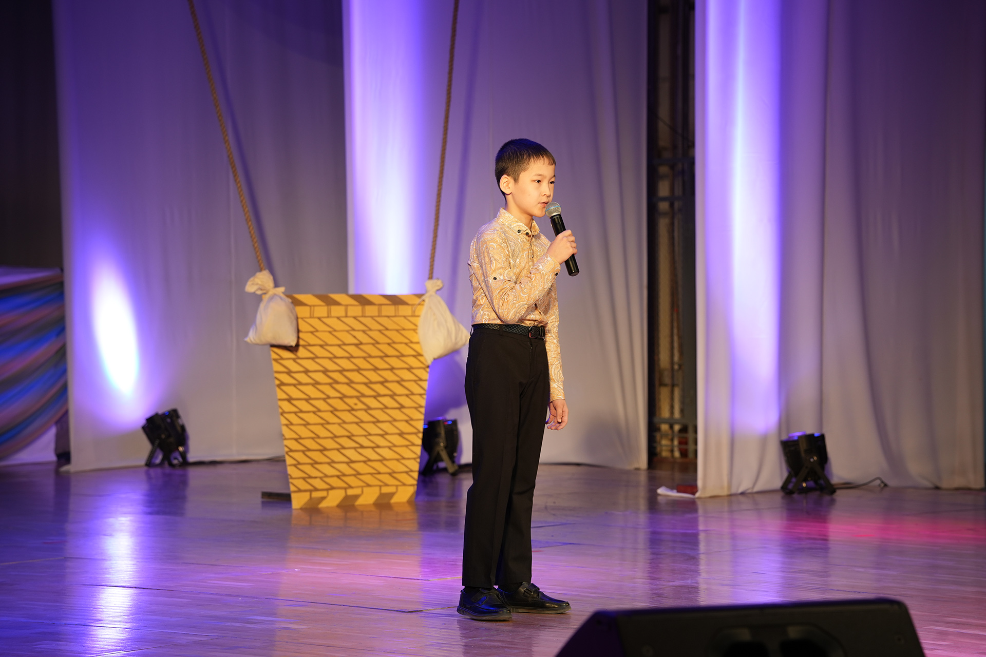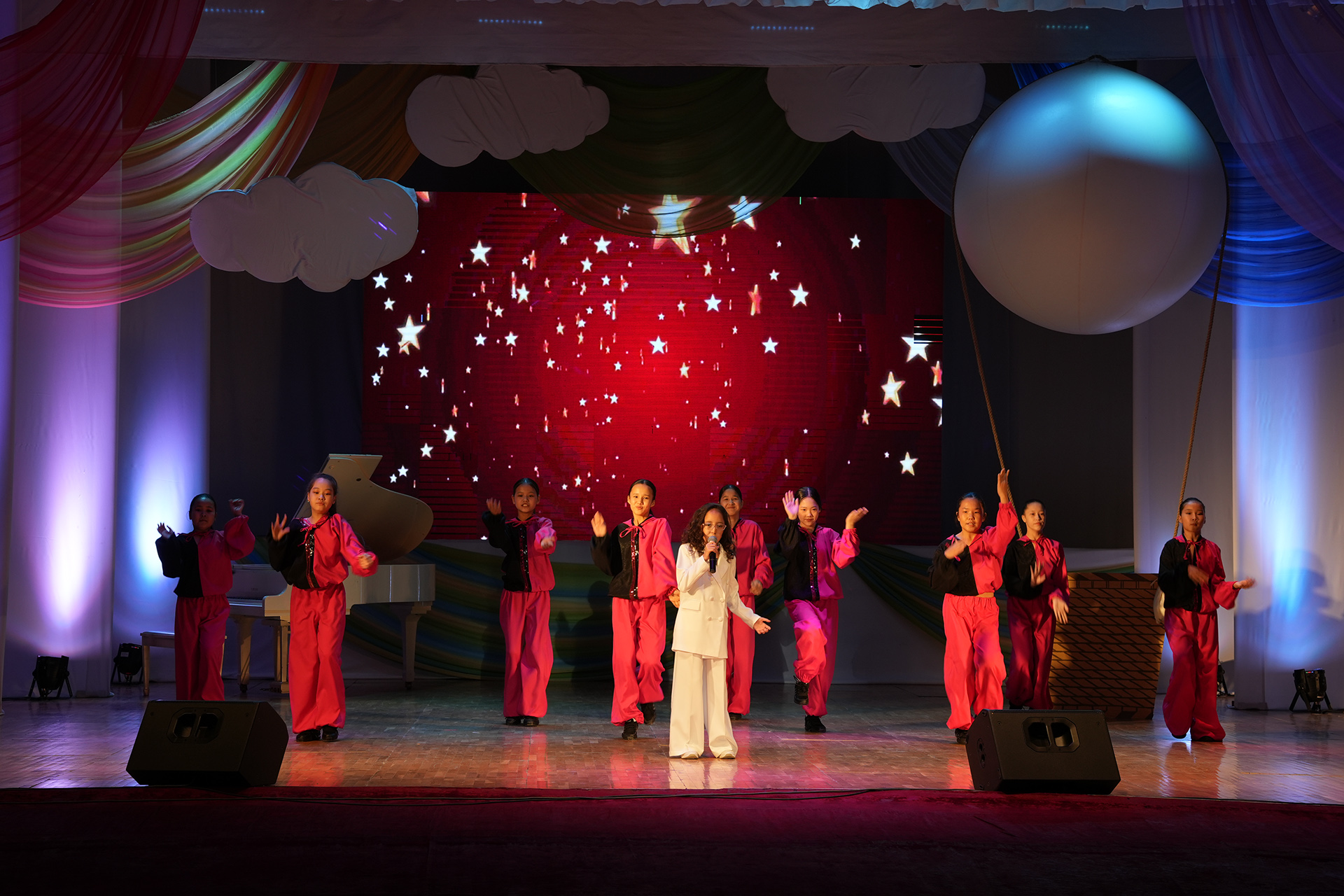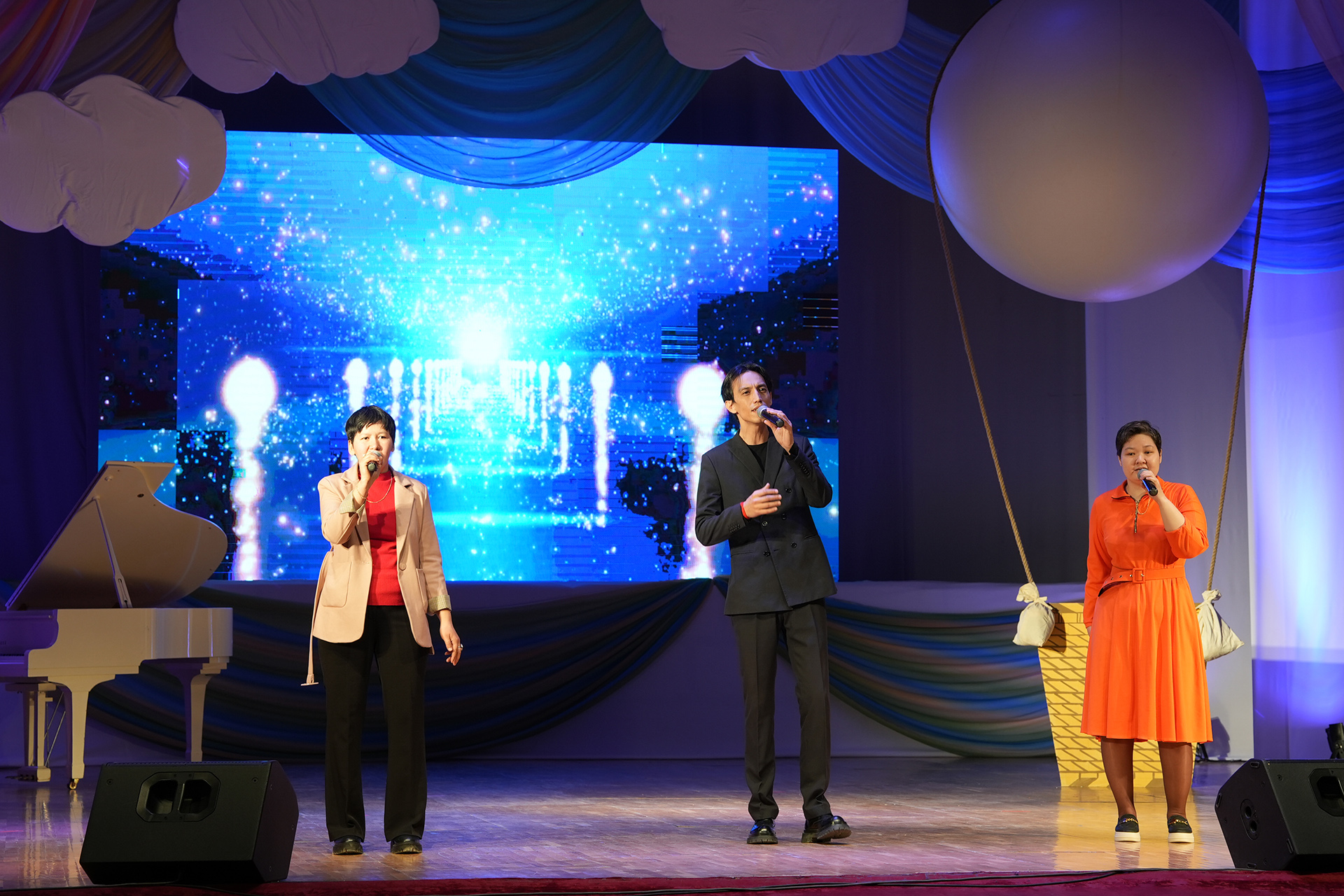 Ежегодно на фестиваль готовится театрализованное представление; в этот раз участники представили зрителям увлекательное путешествие в мир искусства сказочных героев. Красная шапочка (Анастасия Илиясова) и Волк (Уркен Илиясов) рассказали о различных видах искусства в Тридевятом царстве. Зрители с большим удовольствием наблюдали за яркими и интересными номерами участников, показавших на сцене свои таланты, творческий подход и любовь к искусству. Атмосфера в зале была наполнена аплодисментами, теплом и искренними эмоциями. Завершился фестиваль песней «Мы желаем счастья вам…» в исполнении артистов-вокалистов Городского Дворца культуры.