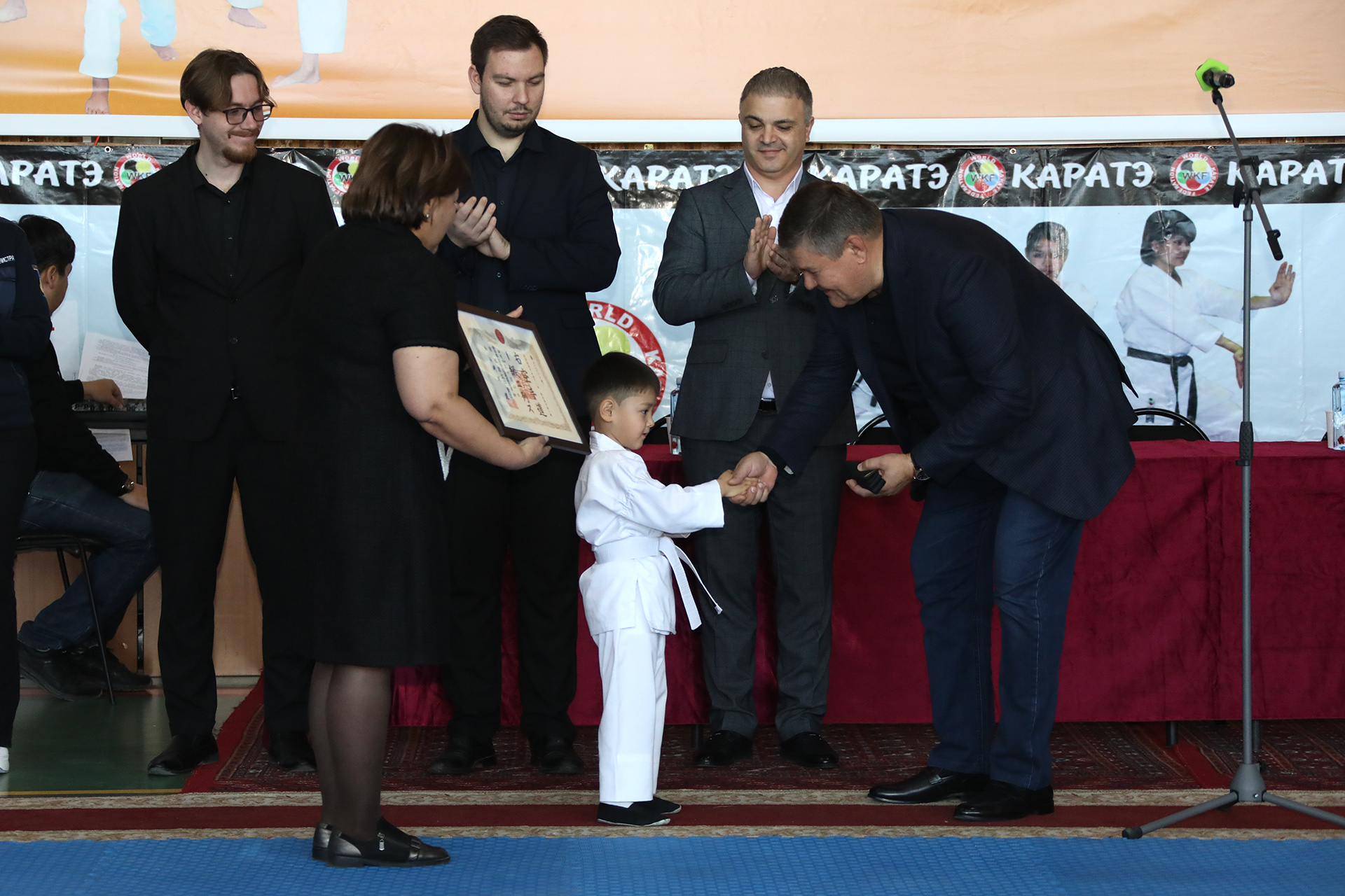 Во время церемонии открытия соревнований вице-президент Федерации каратэ Дильдора Усманова вручила главе администрации национальный сертификат Федерации Казахстана. Юный спортсмен Абилмансур Орынбай передал Константину Бусыгину черный пояс в честь его назначения президентом Федерации каратэ города Байконура.