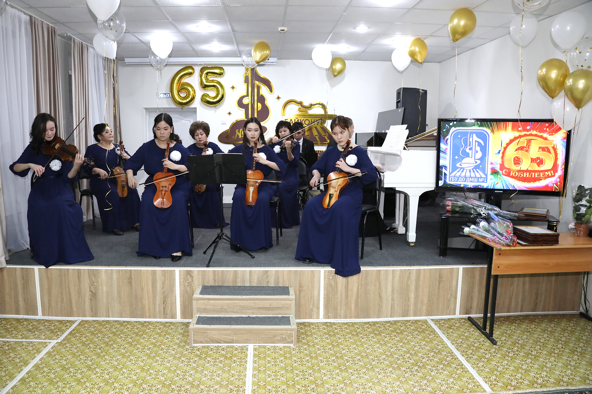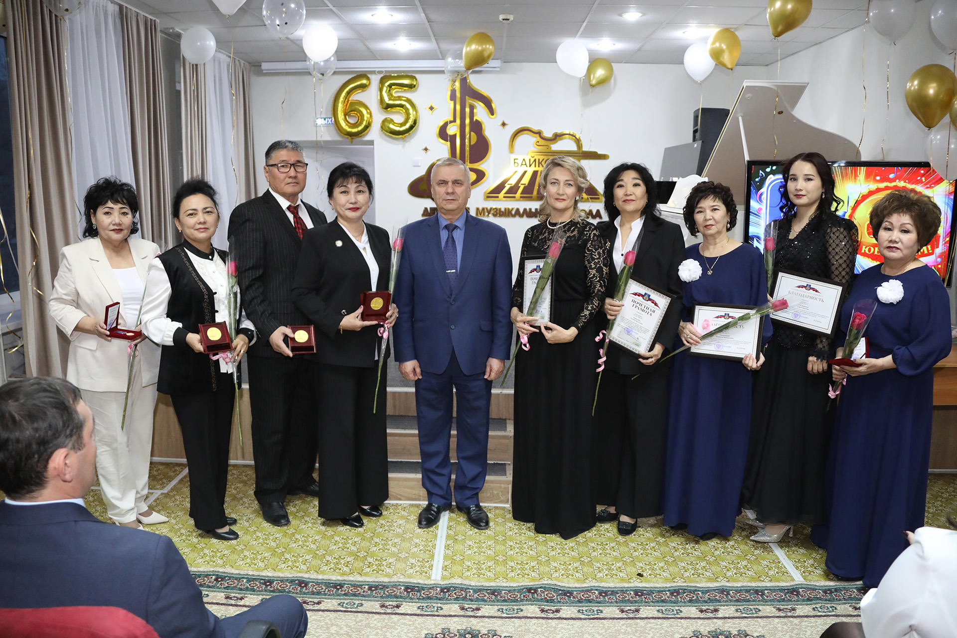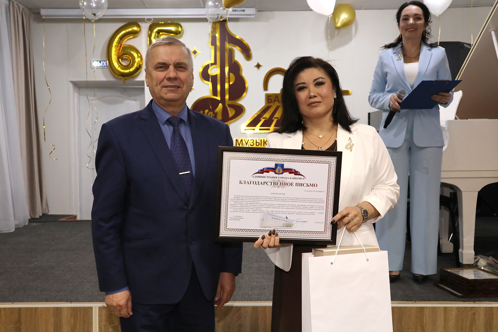 За многолетний добросовестный труд и большой вклад в развитие системы образования и воспитания подрастающего поколения города Байконура коллектив Детской музыкальной школе №1 награжден благодарственным письмом главы администрации города и ценным подарком. Директор учреждения Снежана Тен и сотрудники школы отмечены медалями, почетными грамотами и благодарностями главы администрации.