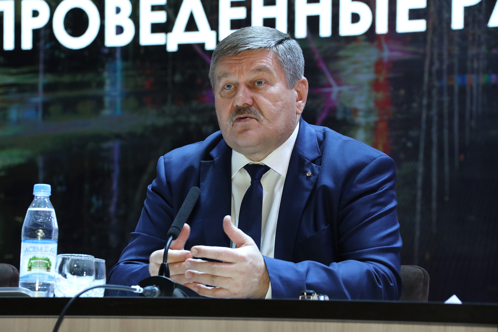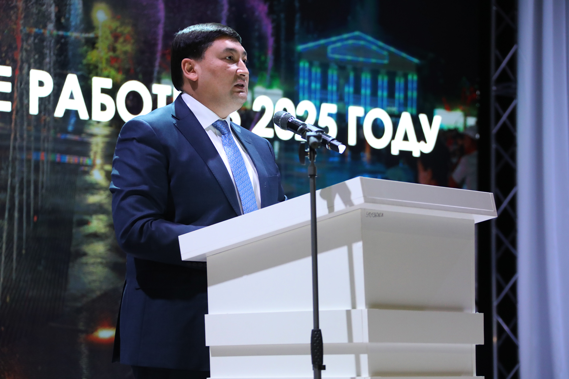 В докладе были подведены итоги работы в сфере жилищно-коммунального хозяйства и благоустройства. Так, в 2025 году завершено строительство ряда объектов инфраструктуры: Музея под открытым небом и «умной» спортивной площадки в парке имени Шубникова, музыкального фонтана на центральной площади города, проведён ремонт кровли бассейна «Орион», выполнен масштабный капитальный ремонт стадиона «Десятилетие». Отремонтированы подъезды в 18 домах, частично обновлены кровли 21 дома, выполнены работы по замене изношенных тамбурных и входных дверей подъездов. В рамках дорожных работ восстановлено более 3,3 тысячи квадратных метров асфальтового покрытия на улицах города, установлены новые автобусные павильоны, пешеходные ограждения и искусственные дорожные неровности. Отдельно глава администрации остановился на проблемных вопросах коммунальной сферы. Сумма задолженности жителей города Байконур перед ГУПЖХ составляет около 308 миллионов рублей, а перед ГУП ПЭО «Байконурэнерго» составляет около 775 миллионов рублей. Ведётся системная работа по взысканию задолженностей. Также отмечено аварийное состояние канализационных сетей и активная работа казахстанской стороны по их капитальному ремонту.