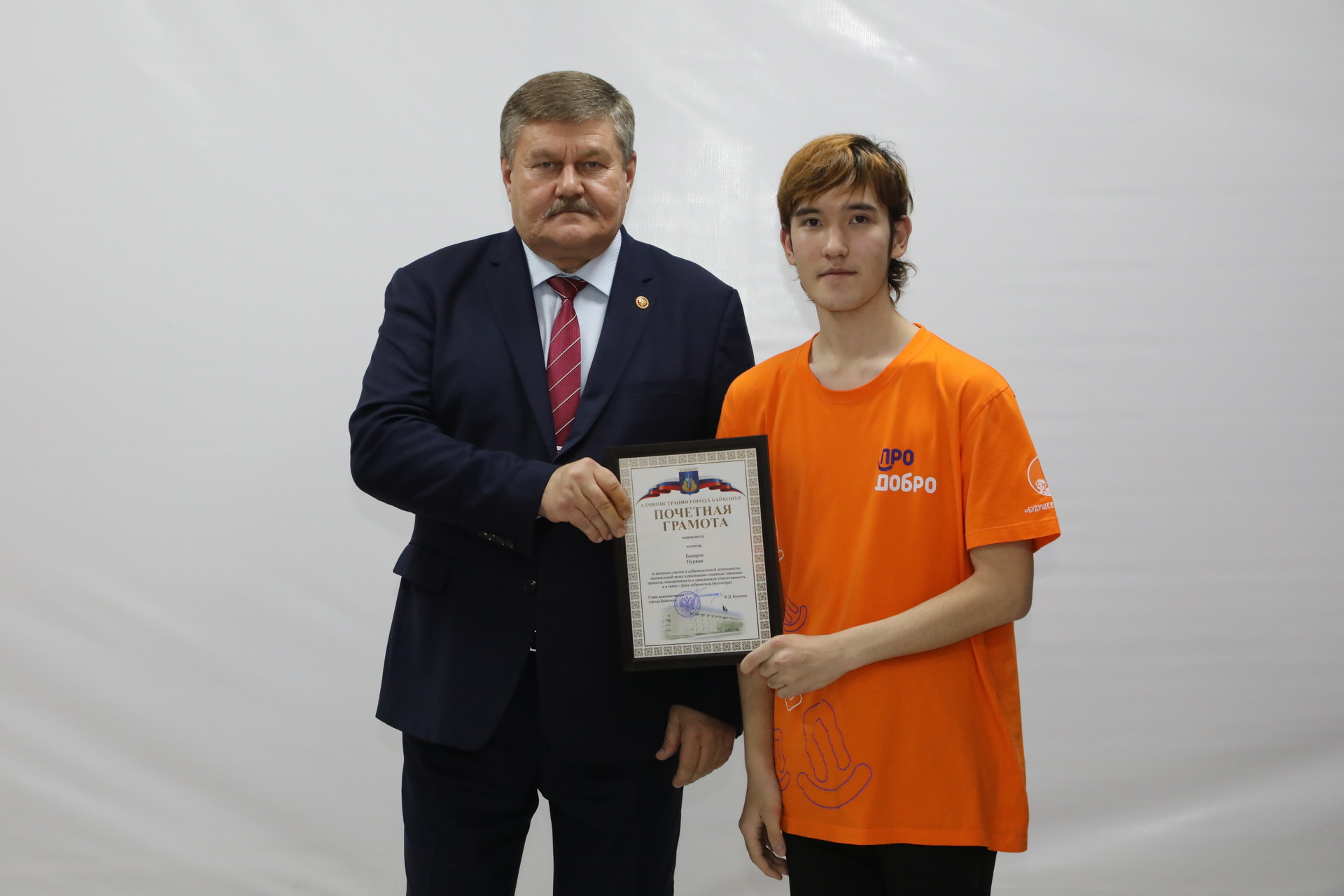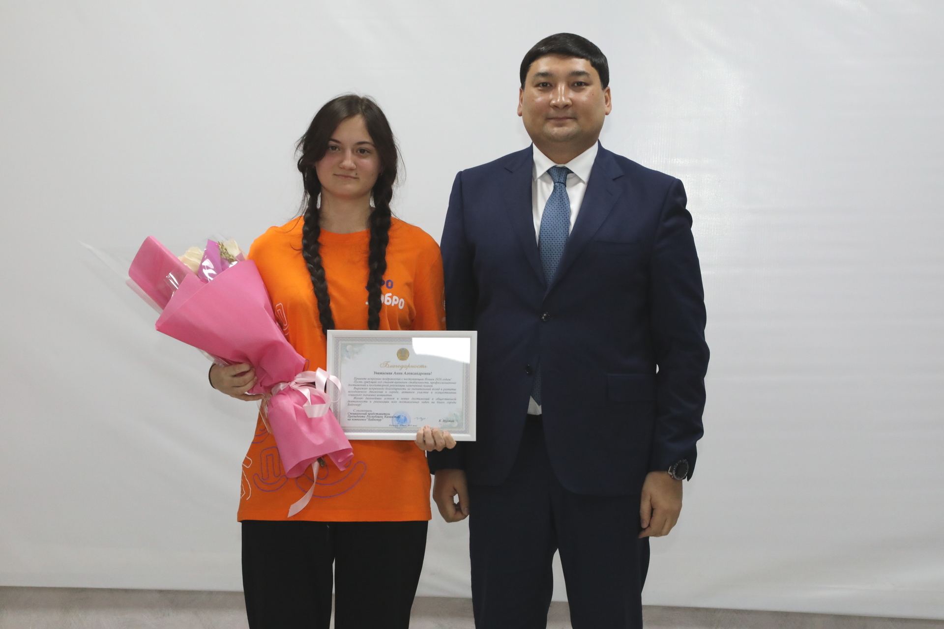 Завершилось мероприятие церемонией награждения. За значительный вклад в развитие добровольческого движения в городе Байконуре, успешную реализацию социально значимых инициатив, формирование культуры взаимопомощи и гражданской ответственности среди молодёжи почётной грамотой главы администрации города награждено клубное объединение «ПРОДобро». Директор Молодёжного центра «Будущее Байконура», специалисты по работе с молодёжью и волонтёры центра отмечены медалями и грамотами главы администрации города.