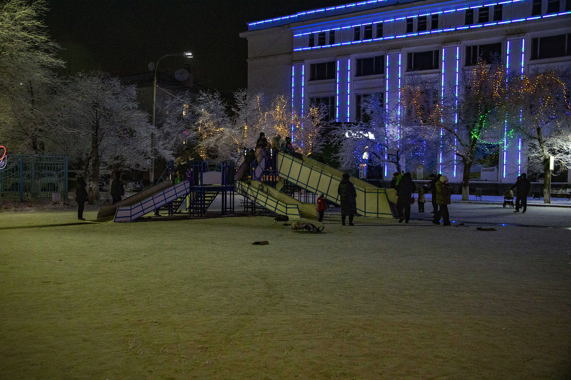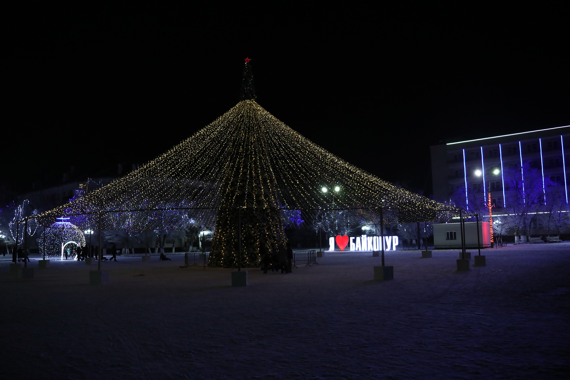 Байконур преобразился в преддверии новогодних праздников. Работники Государственного унитарного предприятиях «Жилищное хозяйство» и других государственных унитарных предприятий завершили работы по украшению города.