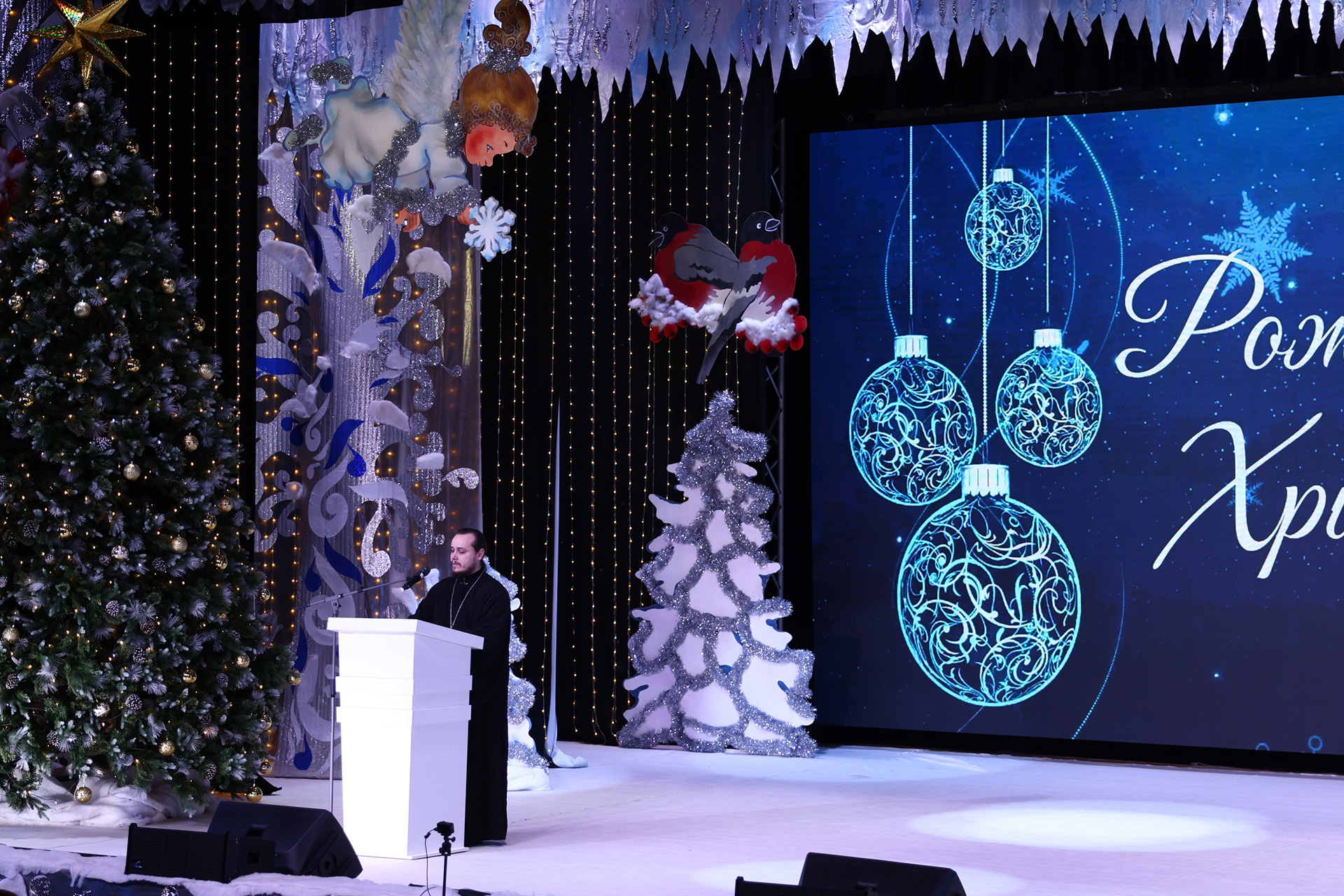 К собравшимся с тёплыми словами обратился настоятель храма святого великомученика Георгия Победоносца иерей Даниил, котоый сердечно поприветствовал собравшихся в зале, чтобы разделить радость великого события – рождение Христа. Отец Даниил поделился мыслями о глубоком смысле Рождества, напомнив о значении этого события для каждого верующего. «Пусть этот праздник принесёт в каждый дом мир, благополучие и согласие, – пожелал Отец Даниил. – Пусть свет Рождества Христова наполнит сердца радостью, надеждой и верой в лучшее». Он также поблагодарил организаторов и участников за подготовленное мероприятие.