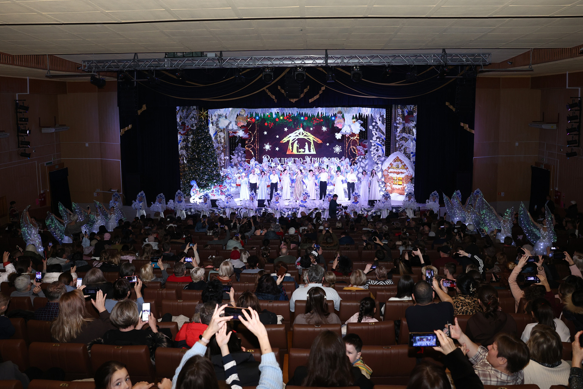 В праздник Рождества Христова, 7 января, киноконцертный зал «Сатурн» имени Карена Шахназарова распахнул свои двери для зрителей, чтобы подарить им незабываемый вечер – праздничный Рождественский концерт «Рождественской молитвы благодать». Это событие стало кульминацией кропотливой и вдохновенной подготовки, в которой участвовали десятки талантливых детей, педагогов и организаторов. Концерт, наполненный духовным смыслом и праздничным настроением, открылся проникновенным исполнением древних церковных песнопений, создавших особую атмосферу благоговения и умиротворения, и настроивших присутствующих на торжественный лад.