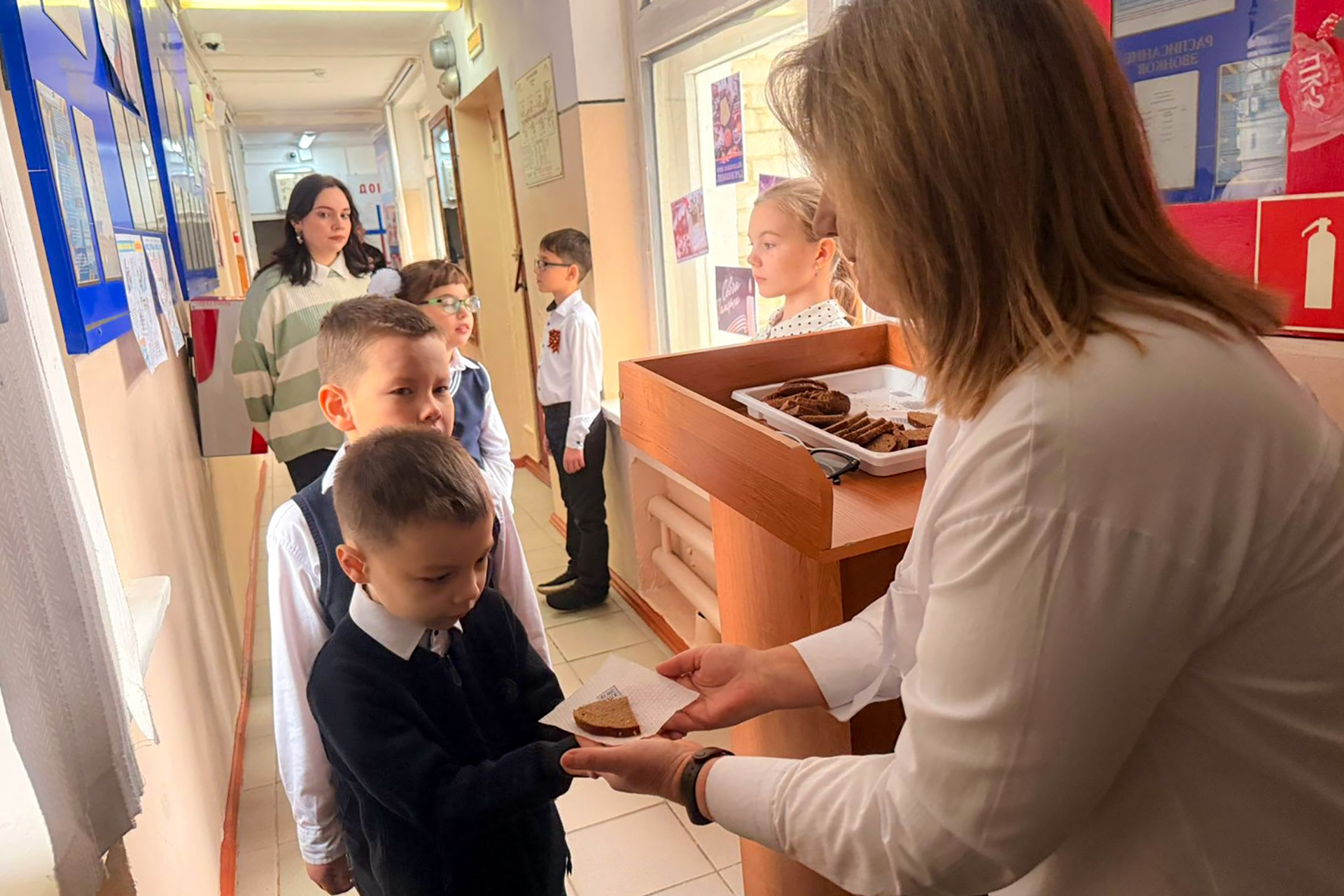 В начальной школе № 15 была организована Вахта памяти. Гостей встречала инсталляция, где ученица в образе хлебной раздатчицы выдавала символические кусочки «блокадного хлеба» — как напоминание о стойкости ленинградцев.