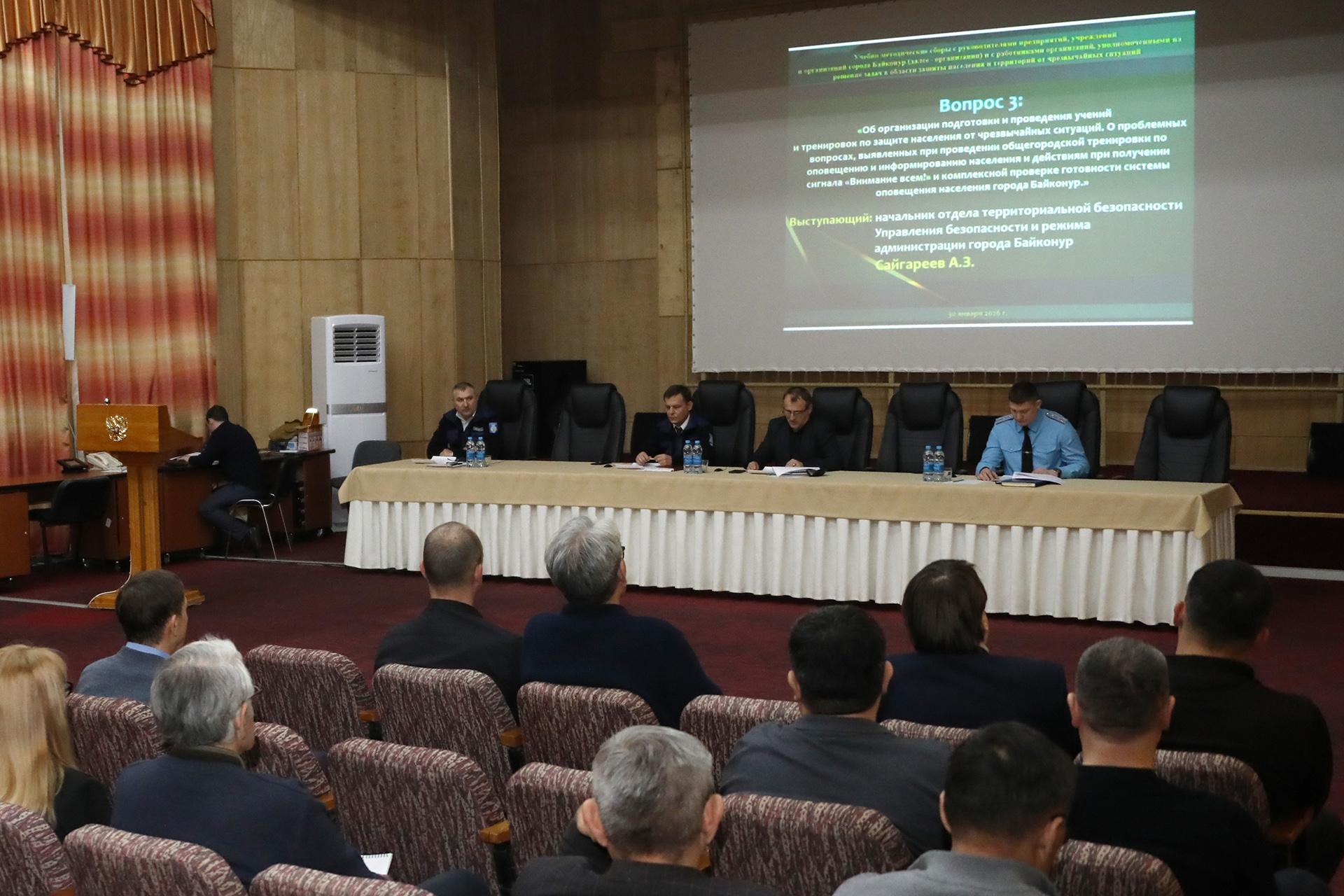 30 января под руководством начальника Управления безопасности и режима администрации города Байконур Александра Рубежанского в городской администрации проведены учебно-методические сборы с руководителями предприятий, учреждений и организаций города Байконура (организации) и с работниками организаций, уполномоченными на решение задач в области защиты населения и территорий от чрезвычайных ситуаций (уполномоченные работники), в котором приняли участие более 100 человек.