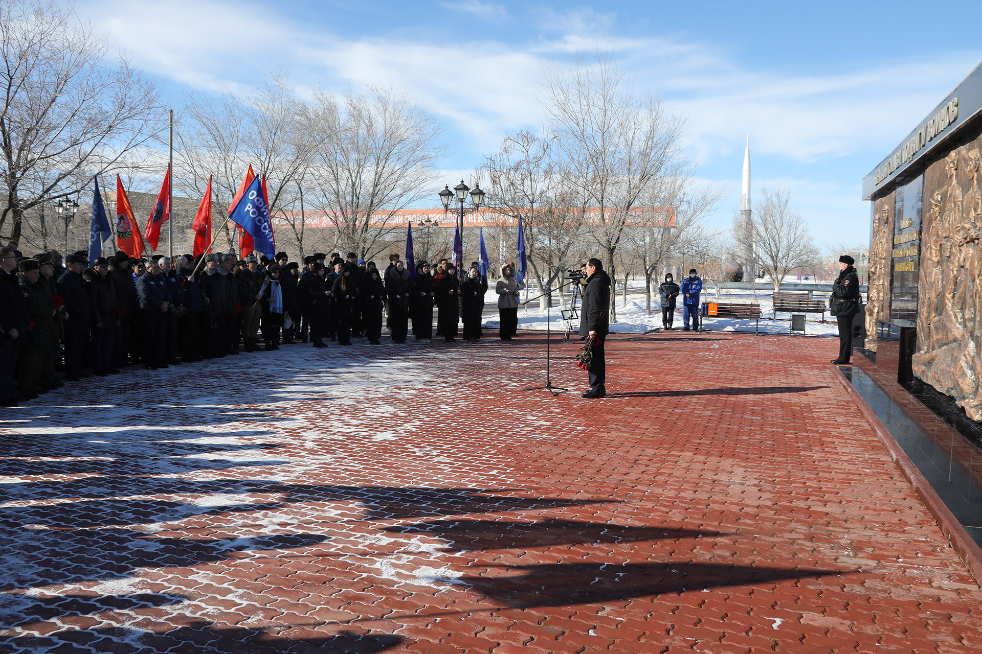 К участникам митинга обратился военный комиссар города Байконура, участник боевых действий, воин-интернационалист Максим Капустин. В своей речи он выразил искреннюю признательность всем, кто с честью выполнил воинский долг за пределами Отечества, и призвал хранить память о тех, кто отдал жизнь ради мирного неба.