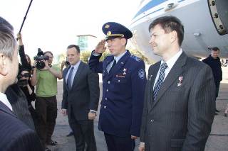 На аэродроме Крайний космодрома Байконур в 14:55 и 15:25 по московскому времени совершили посадку самолеты ТУ-134 и Ил-76, которые доставили основной (Александр Калери, Олег Скрипочка, Скотт Келли) и дублирующий (Сергей Волков, Олег Кононенко, Рональд Гаран) экипажи транспортного пилотируемого корабля "Союз ТМА-М".