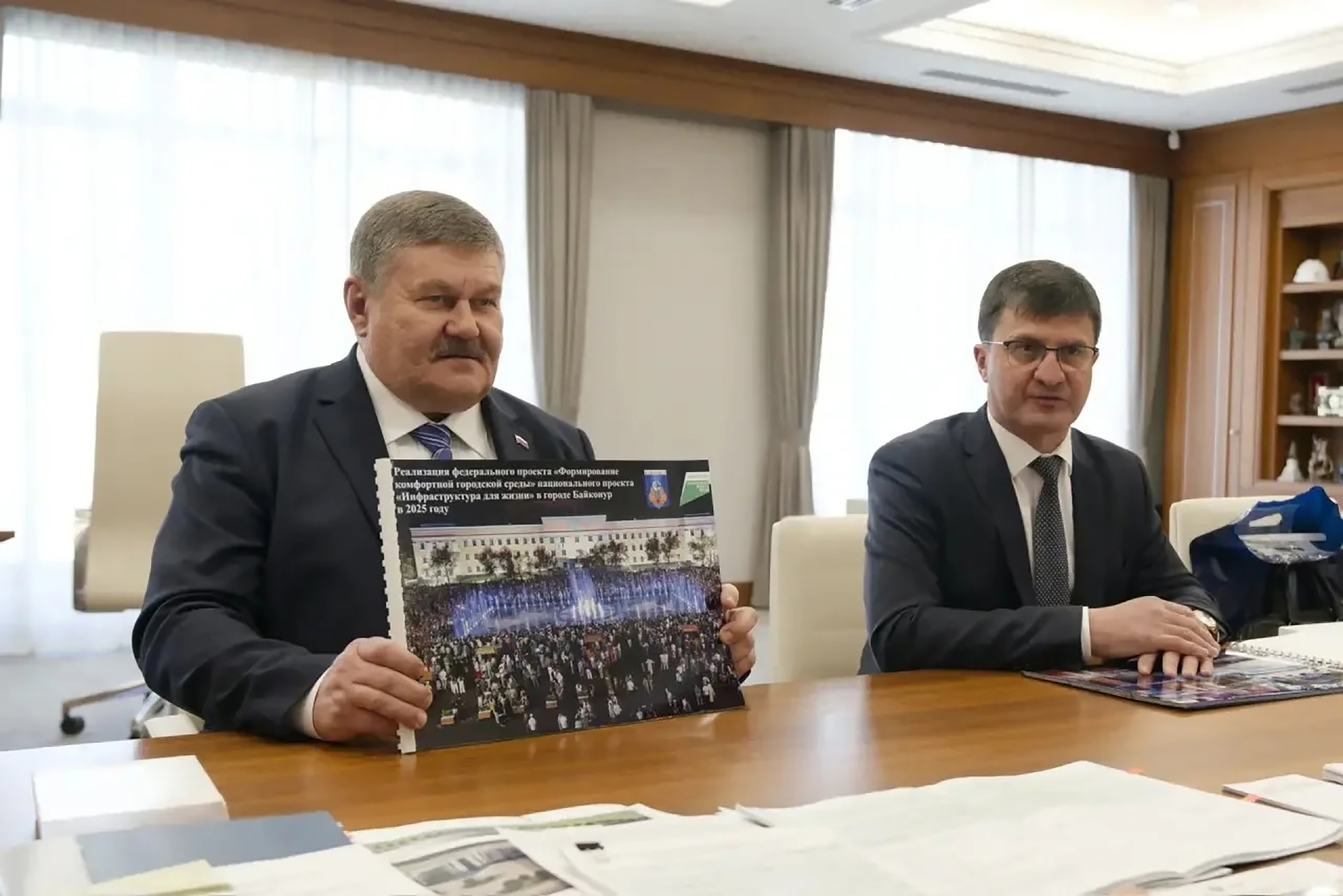 Глава администрации города Байконур Константин Бусыгин и его заместитель Алексей Бобрышев находятся с рабочим визитом в Москве. В ходе поездки прошла встреча с министром строительства и ЖКХ РФ Иреком Файзуллиным.