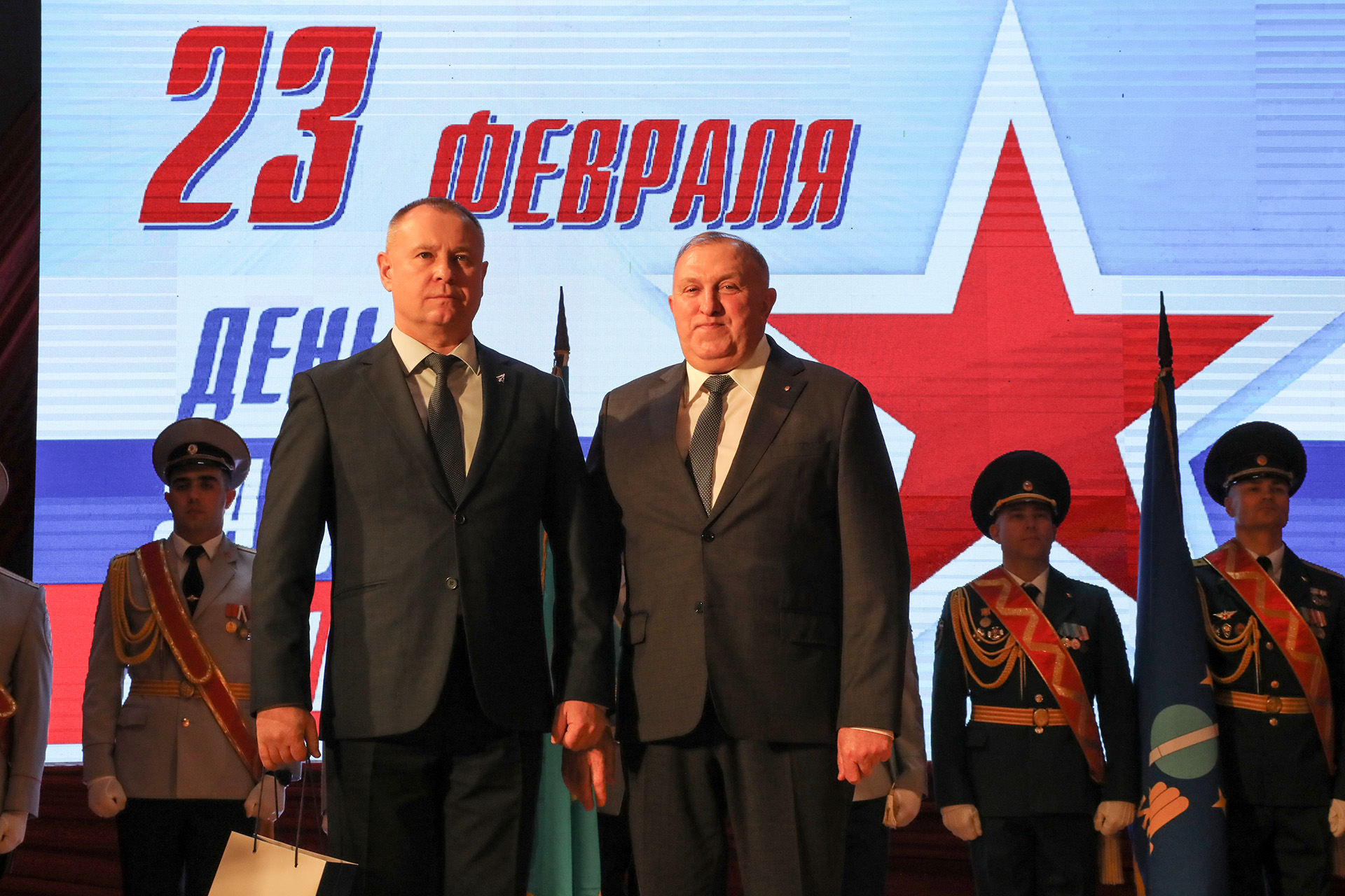 С поздравительной речью также выступил начальник космодрома – директор филиала АО «ЦЭНКИ» – КЦ «Южный» Сергей Мочалов, который вручил почётные грамоты и памятные подарки ветеранам военной службы.