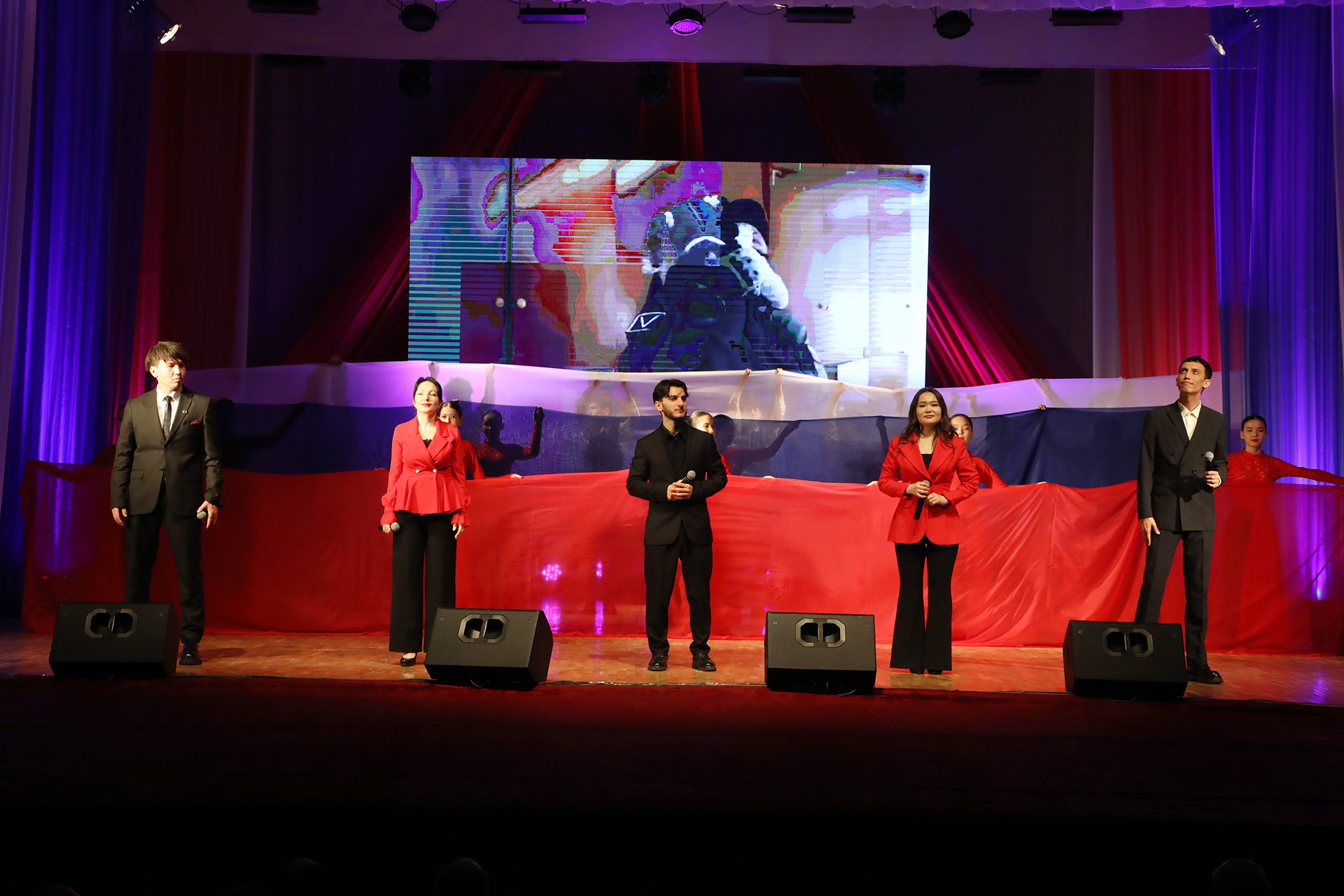 Праздничное мероприятие продолжилось концертной программой. Вокалисты и творческие коллективы Городского Дворца культуры исполнили патриотические и эстрадные композиции, а танцевальные коллективы порадовали зрителей яркими и эмоциональными хореографическими номерами. Завершением концерта стала песня «Сыны Отечества» в исполнении артистов Городского Дворца культуры.