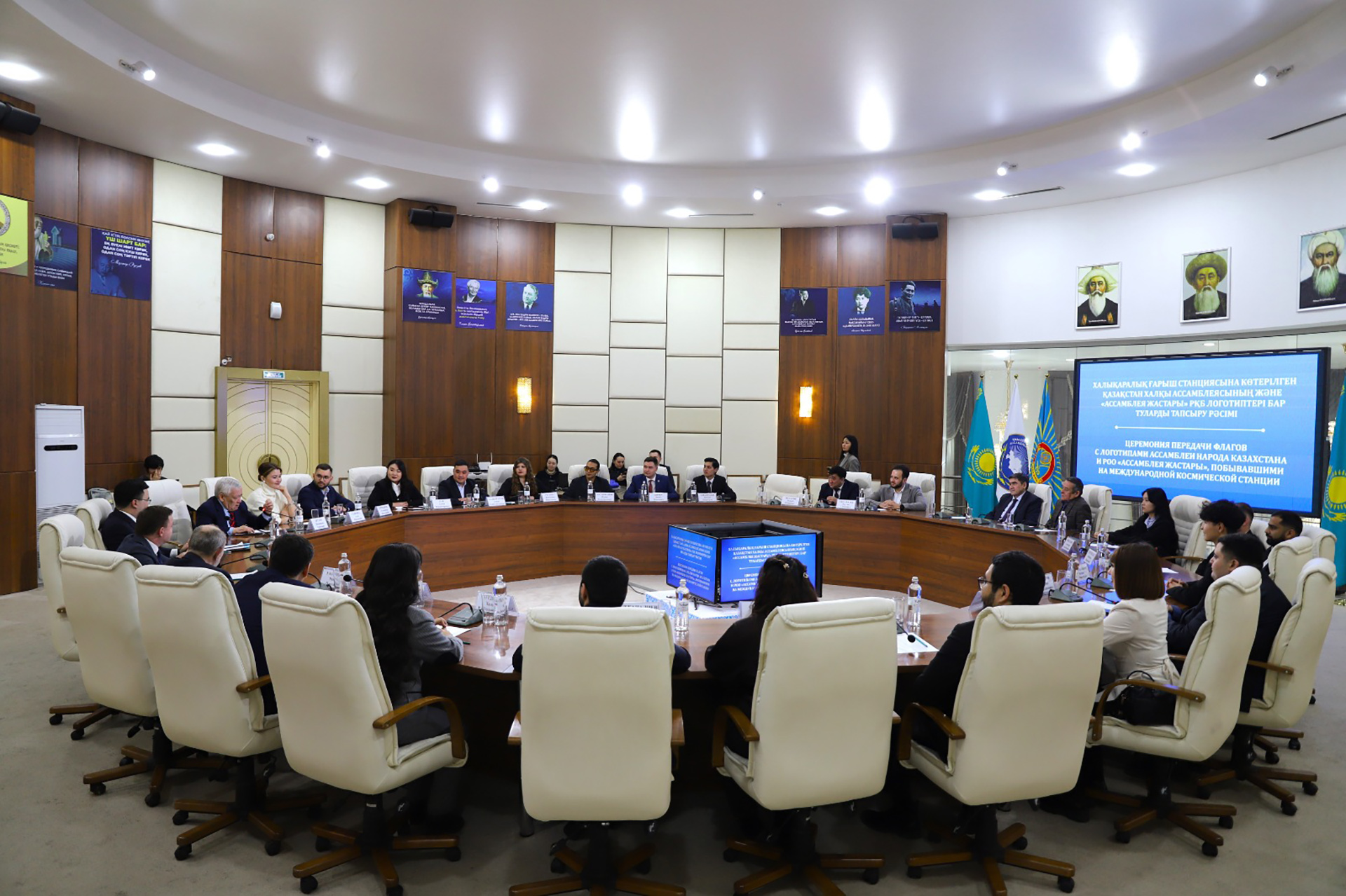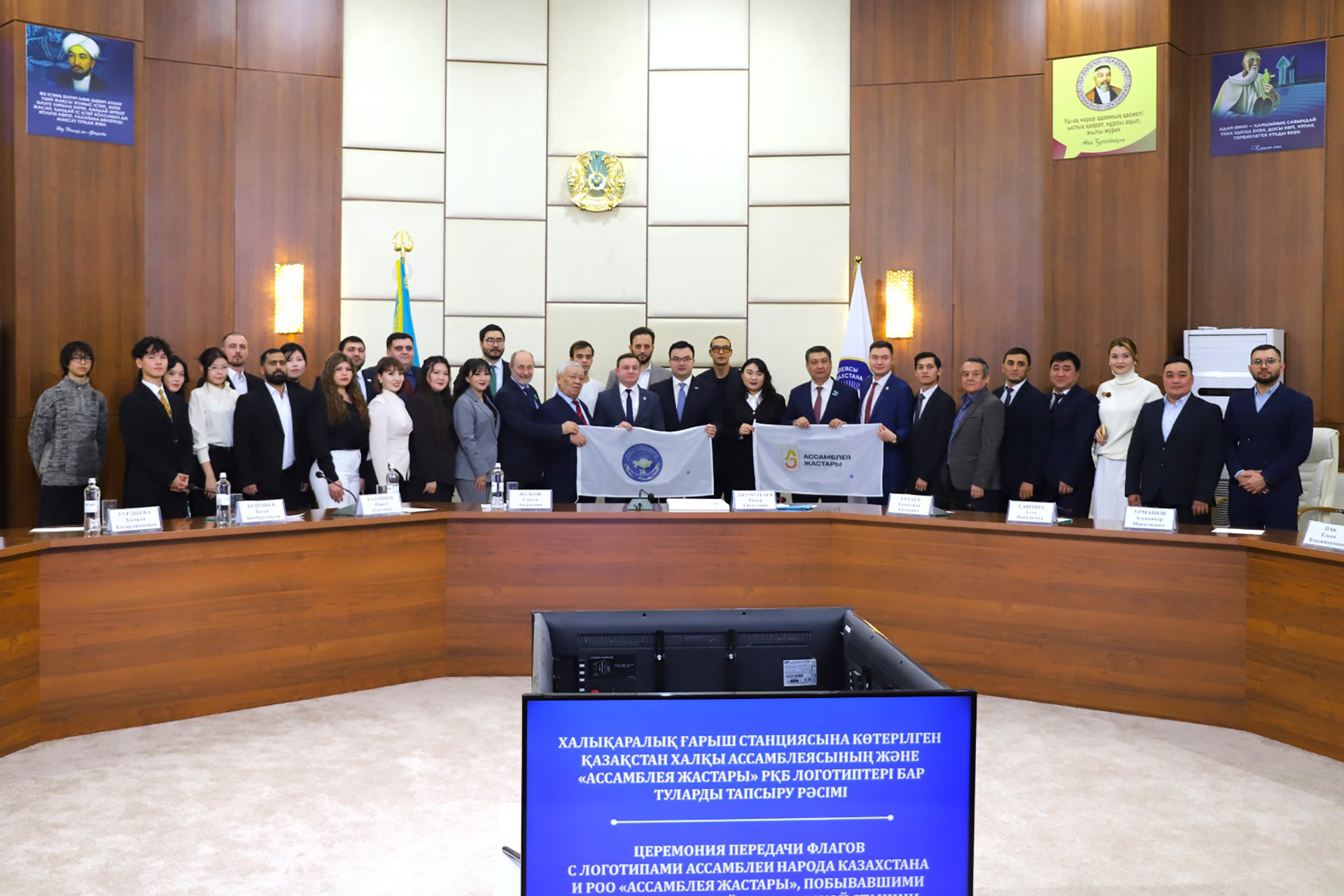 26 февраля в Доме дружбы города Астаны состоялась торжественная церемония передачи флагов Ассамблеи народа Казахстана и Республиканского общественного объединения «Ассамблея жастары», побывавших на Международной космической станции. Флаги передал заместитель главы администрации города Байконура Сергей Волков.