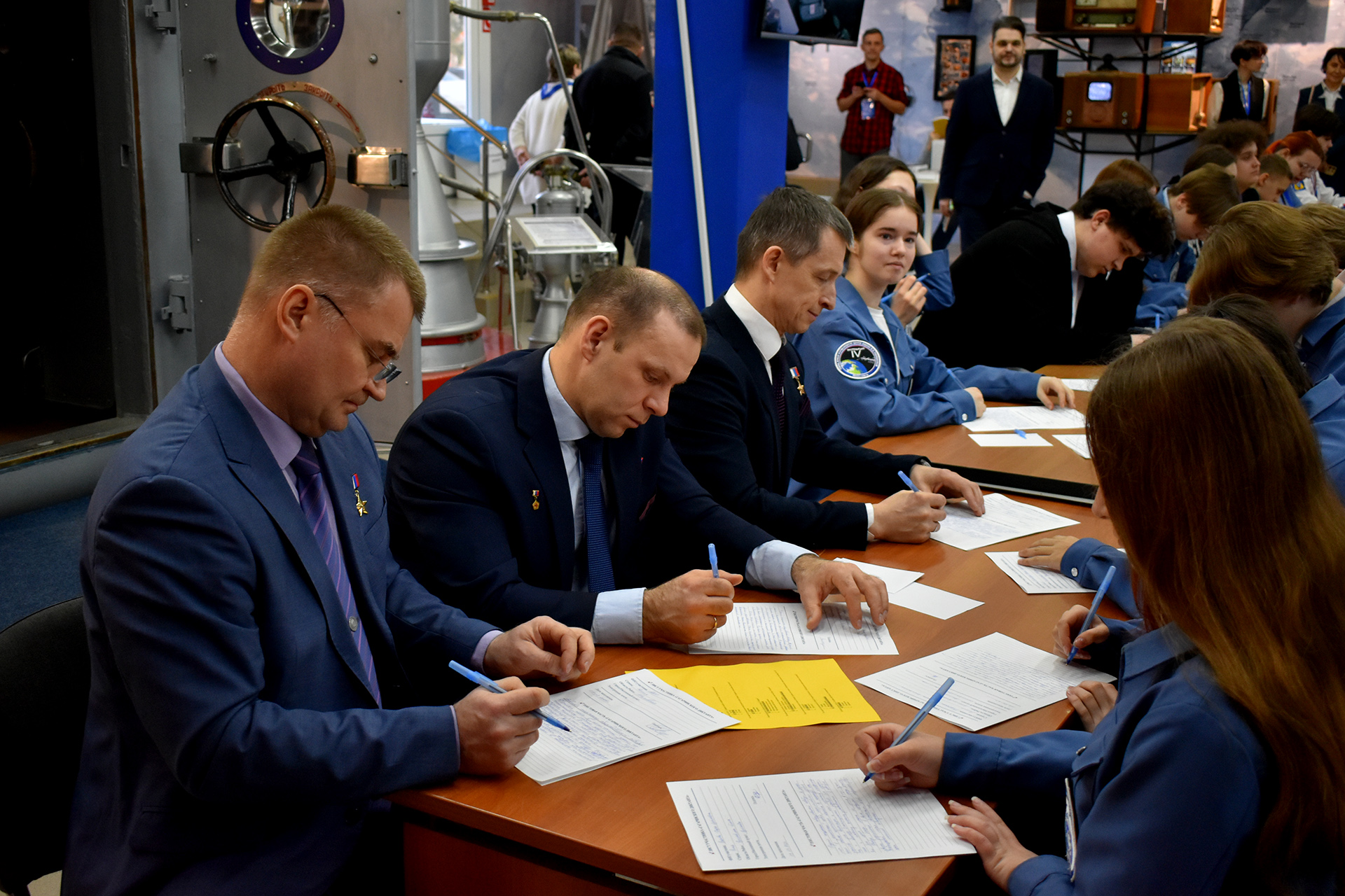 Обучающиеся Регионального центра «Сириус.Байконур» Мансур Асанов, Сергей Кулагин, Никита Грибанов и Александр Колетвинцев вместе с другими участниками молодежной секции приняли участие в акции «Гагаринский диктант». Вместе со школьниками свои знания биографии первого космонавта проверили летчики-космонавты Сергей Рыжиков, Иван Вагнер и Алексей Овчинин.