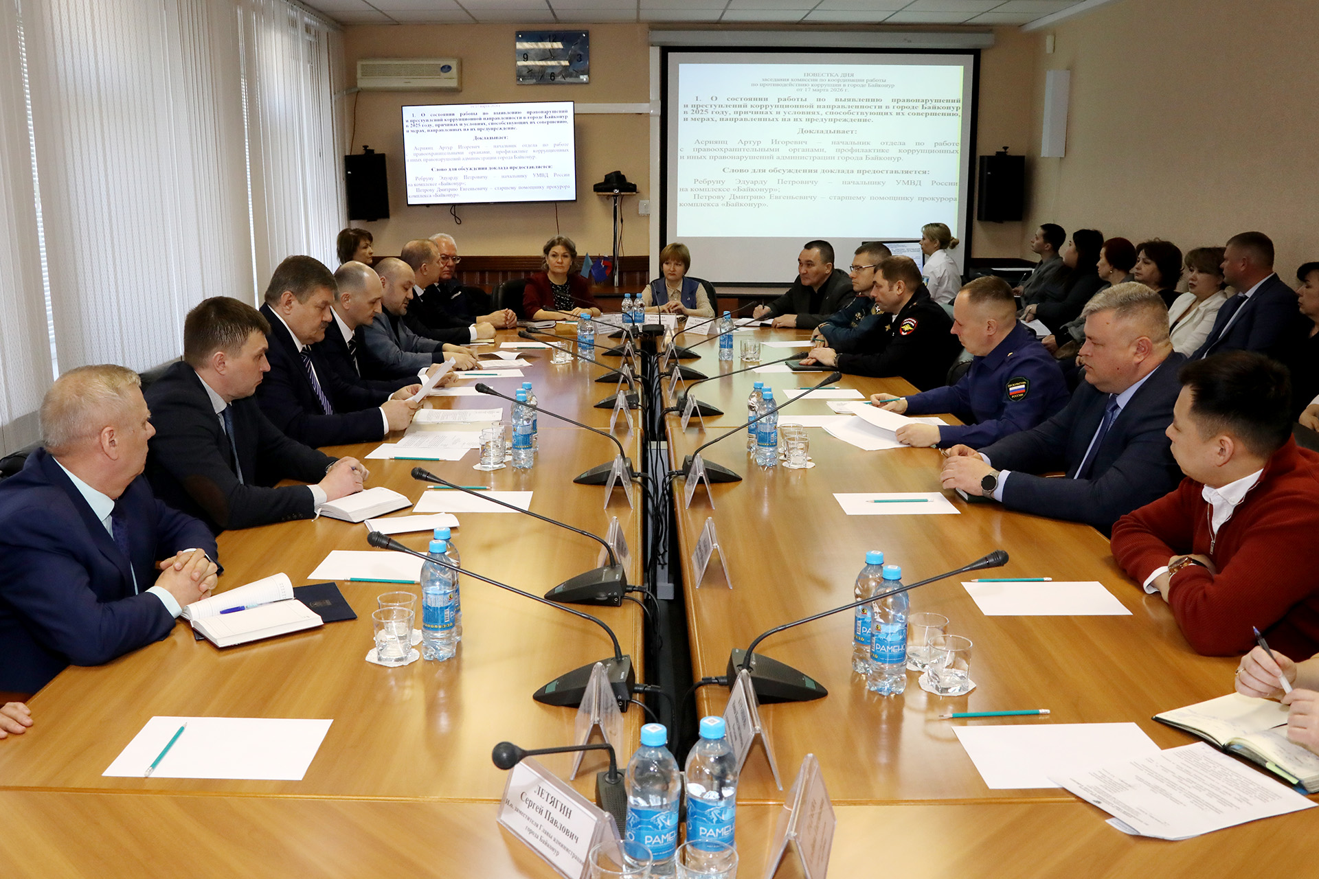 Начальник УМВД России на комплексе «Байконур» Эдуард Ребрун, старший помощник прокурора комплекса «Байконур» Дмитрий Петров и начальник отдела по работе с правоохранительными органами, профилактике коррупционных и иных правонарушений городской администрации Артур Асриянц в своих выступлениях обозначили ряд нововведений и мероприятий, которые были приняты с этой целью в 2025 году, и подтвердили эффективность данных действий, отметив, что с момента внедрения соответствующих мер, новые случаи противоправных действий в сфере социальных выплат больше не фиксировались.