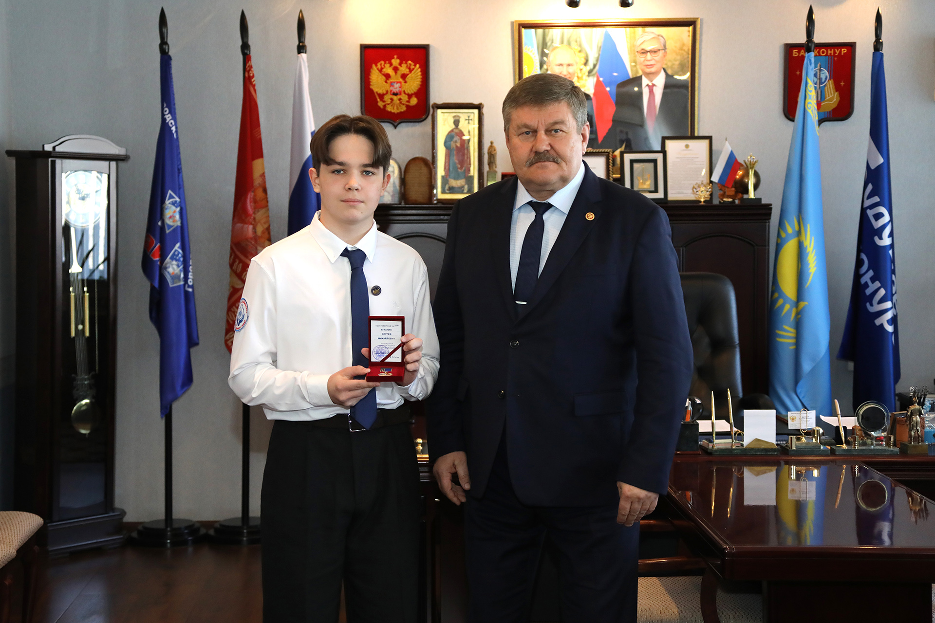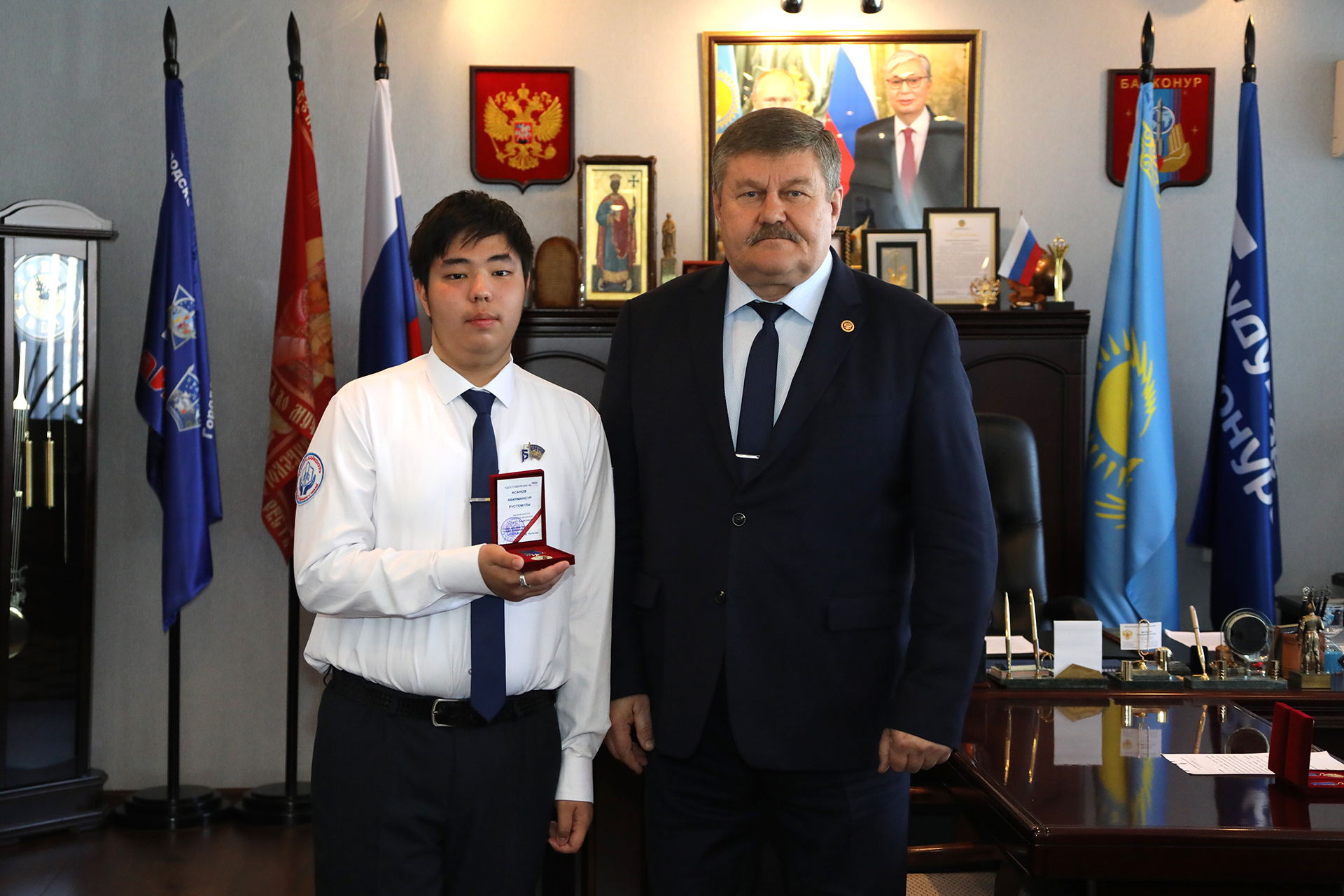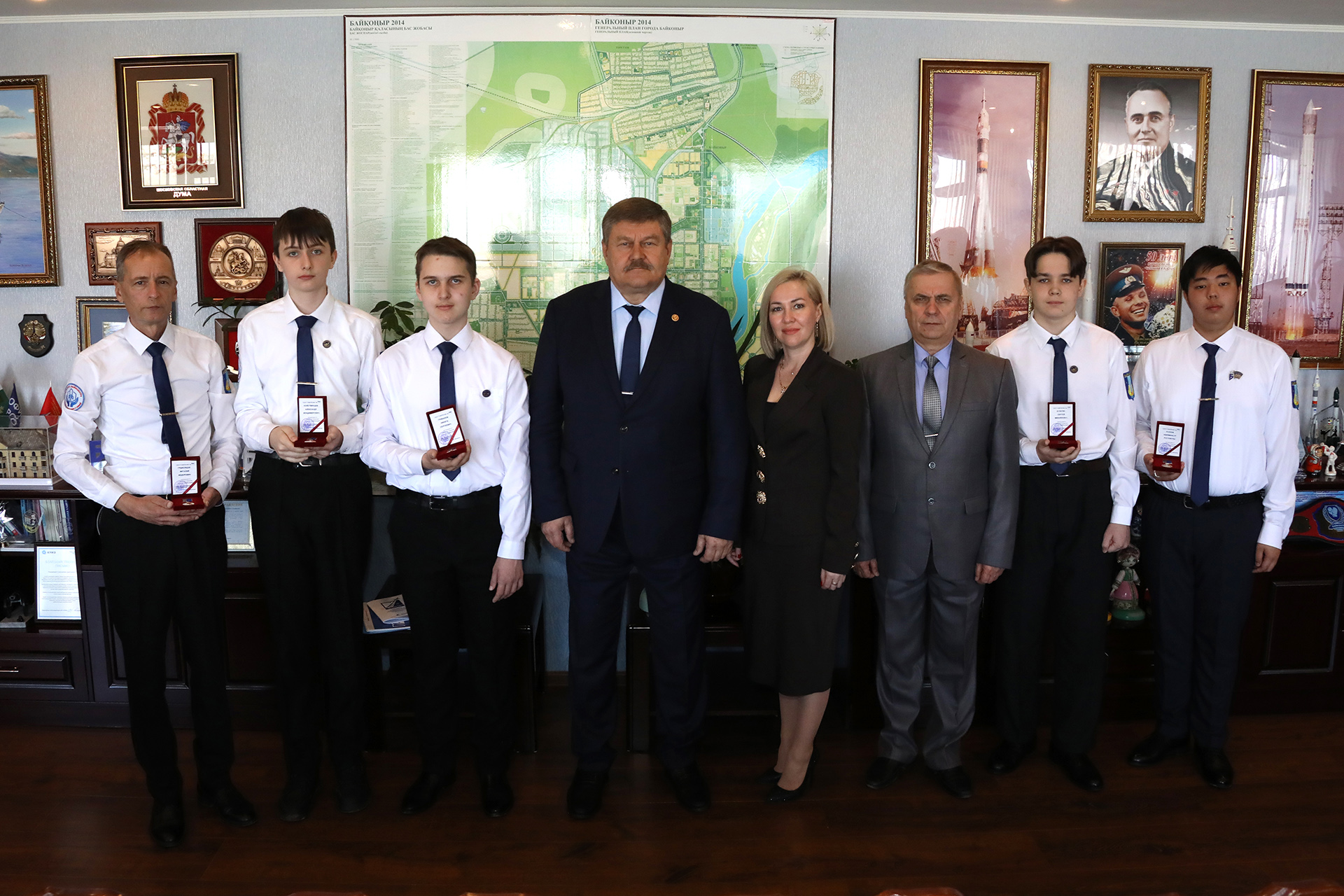 В завершение встречи глава администрации вручил памятные медали «70 лет Байконуру» руководителю Регионального центра «Сириус. Байконур» и обучающимся Медиацентра «КоСМИческий отряд».