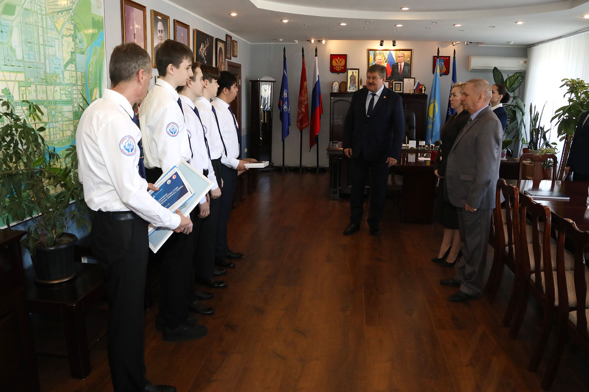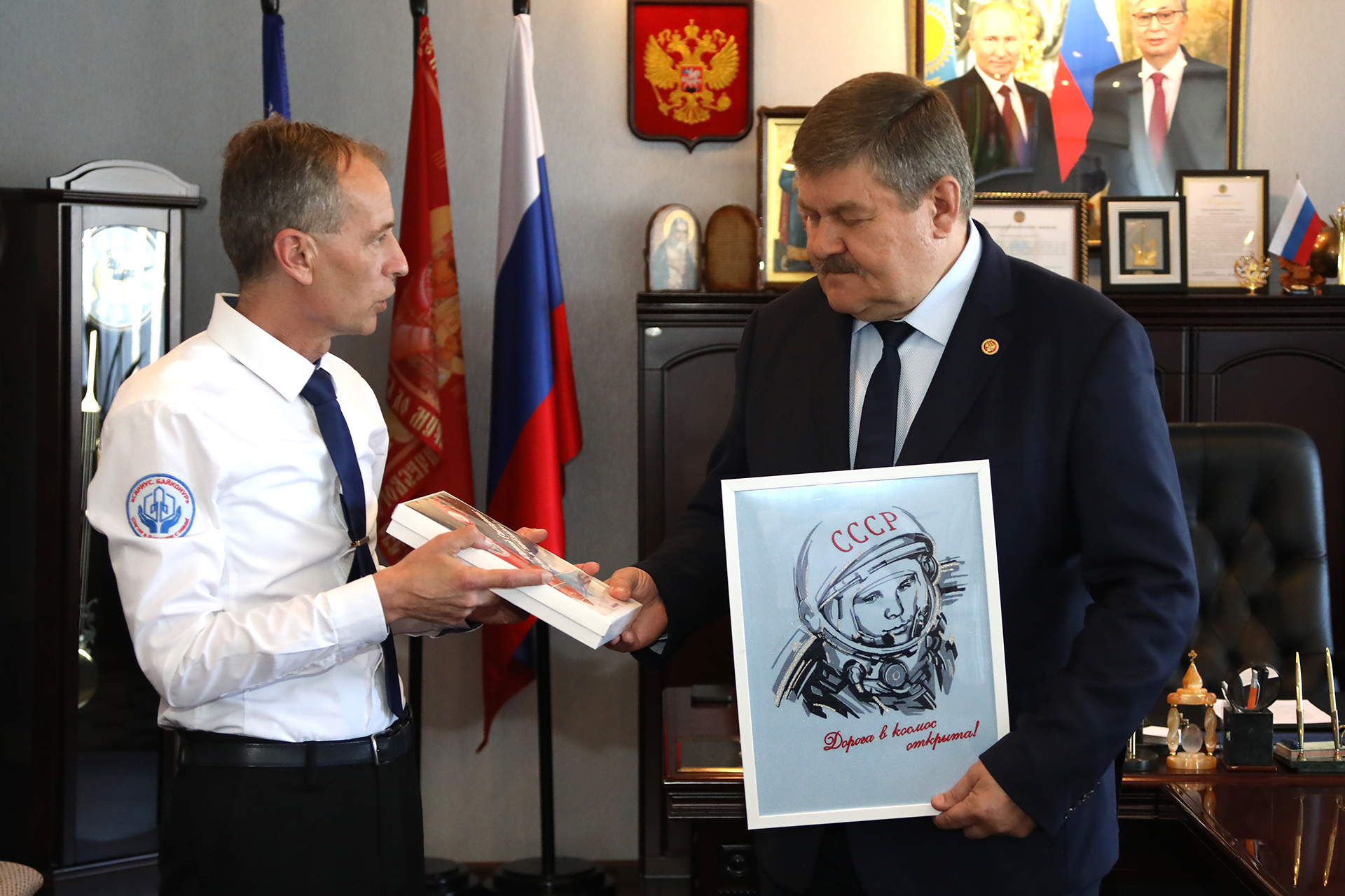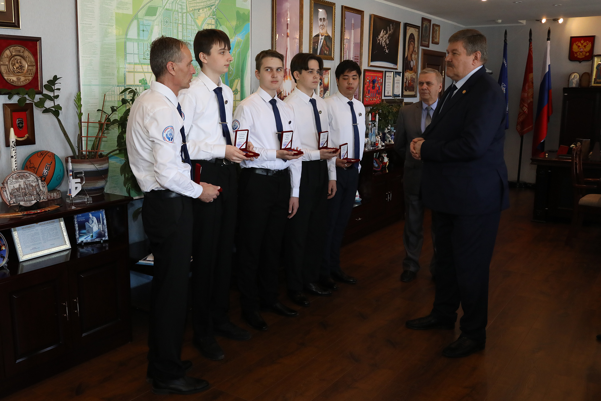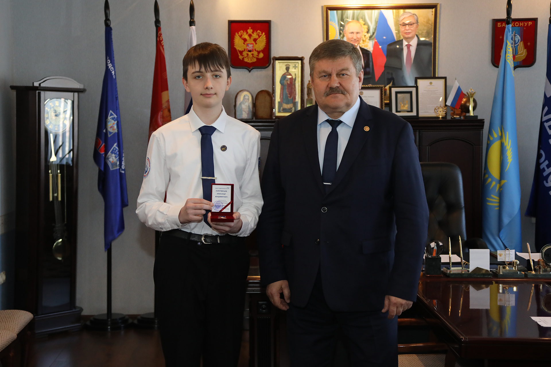 В завершение встречи глава администрации вручил памятные медали «70 лет Байконуру» руководителю Регионального центра «Сириус. Байконур» и обучающимся Медиацентра «КоСМИческий отряд».