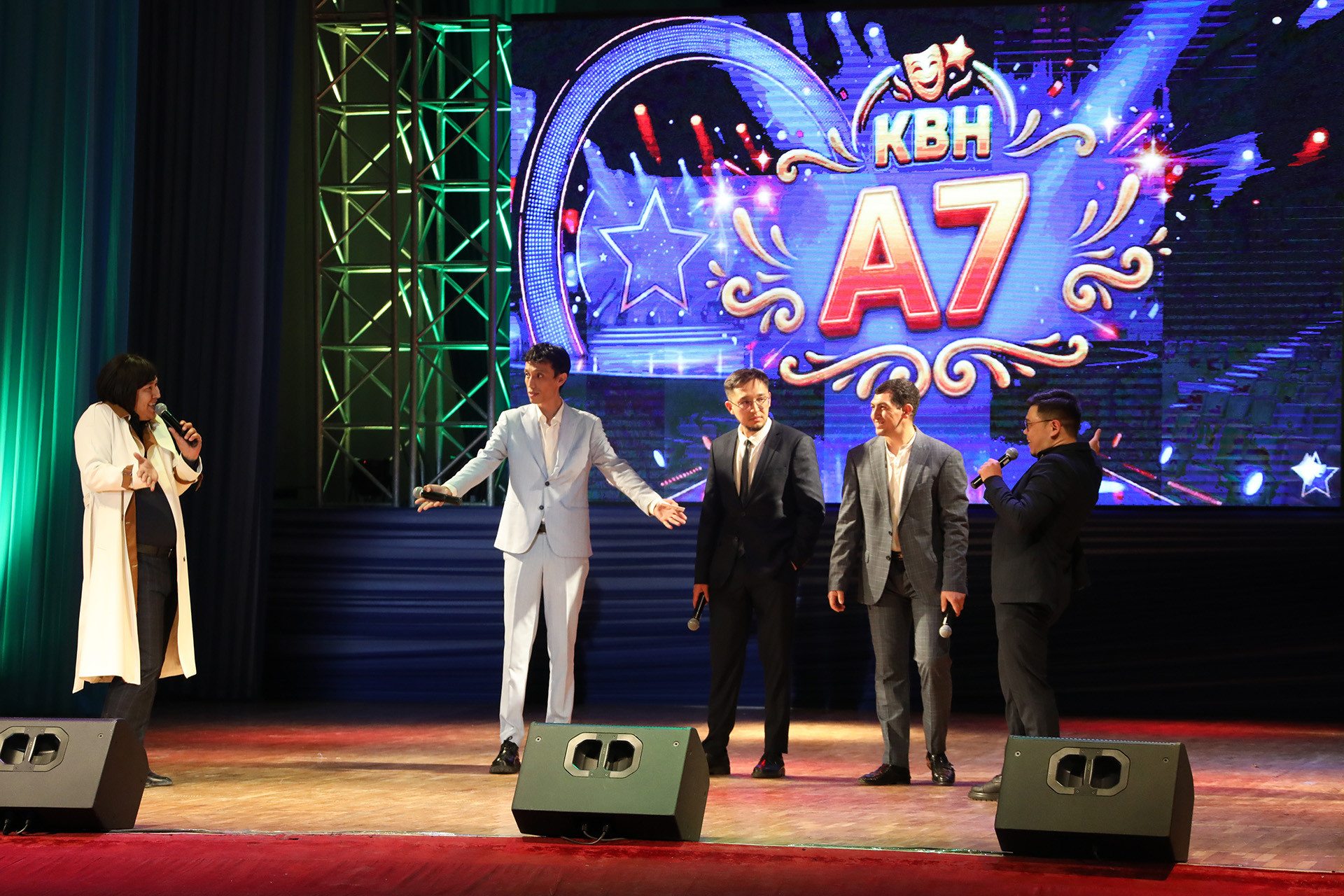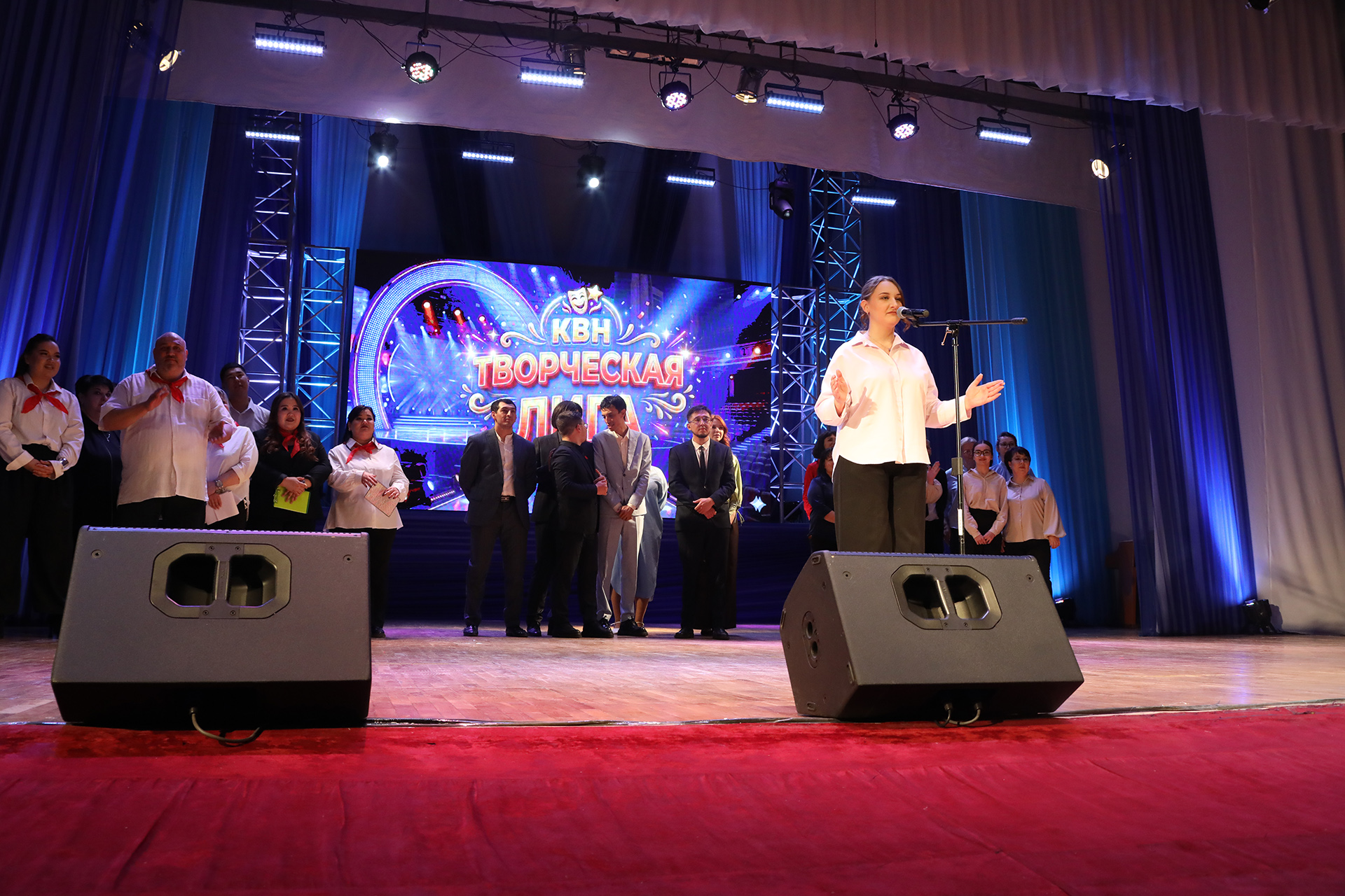 Праздничную программу продолжила творческая лига КВН. На сцене встретились команды ЦРТДиЮ «Ребята с нашего дворца», ЦБС «Унесенные бесконаком», ГДК «А7».