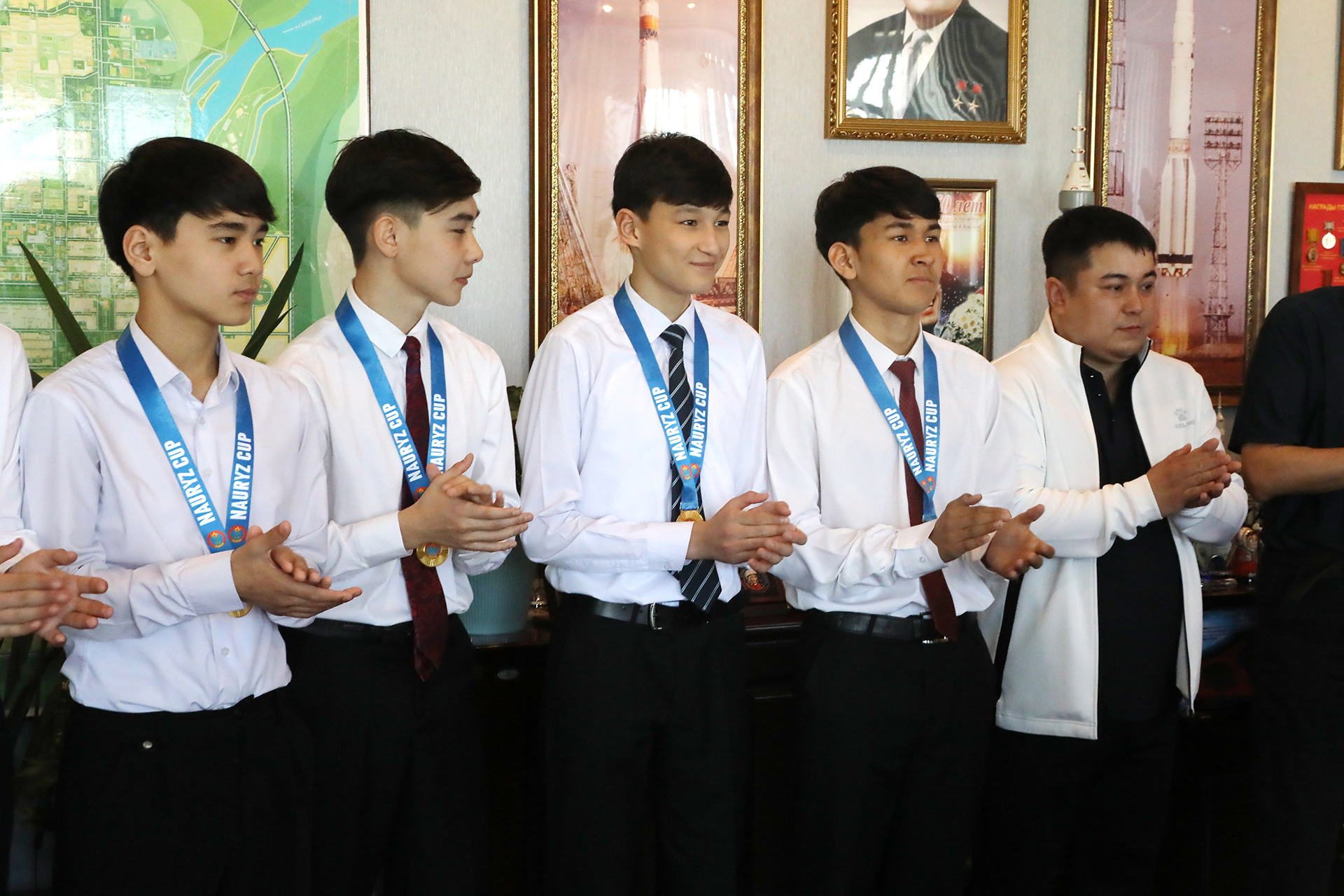 За большой вклад в развитие физической культуры и спорта в городе старший тренер-преподаватель Спортивной школы Темиржан Атагулов и тренер-преподаватель Жандос Адилов награждены памятными медалями «70 лет Байконуру». Все участники команды также отмечены памятными медалями.
