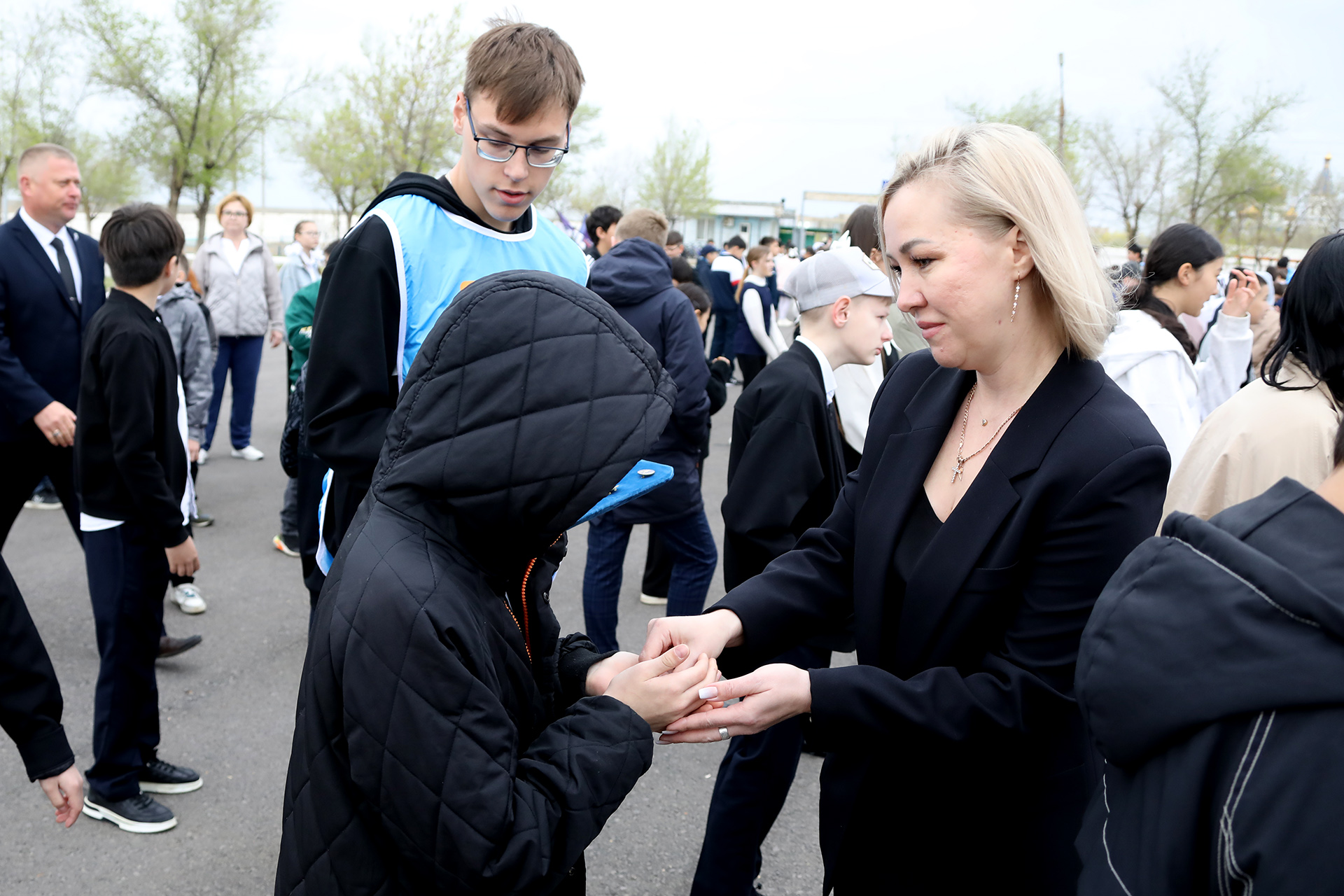 Также с приветственным словом выступил Жан Шайхысламов. Он поздравил школьников с приобретением нового статуса и пожелал успехов в учёбе, крепкого здоровья и уверенности в своем будущем.