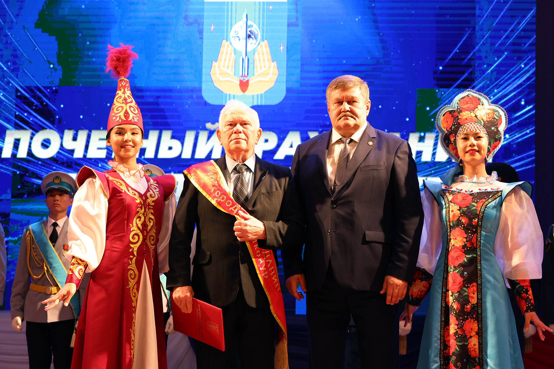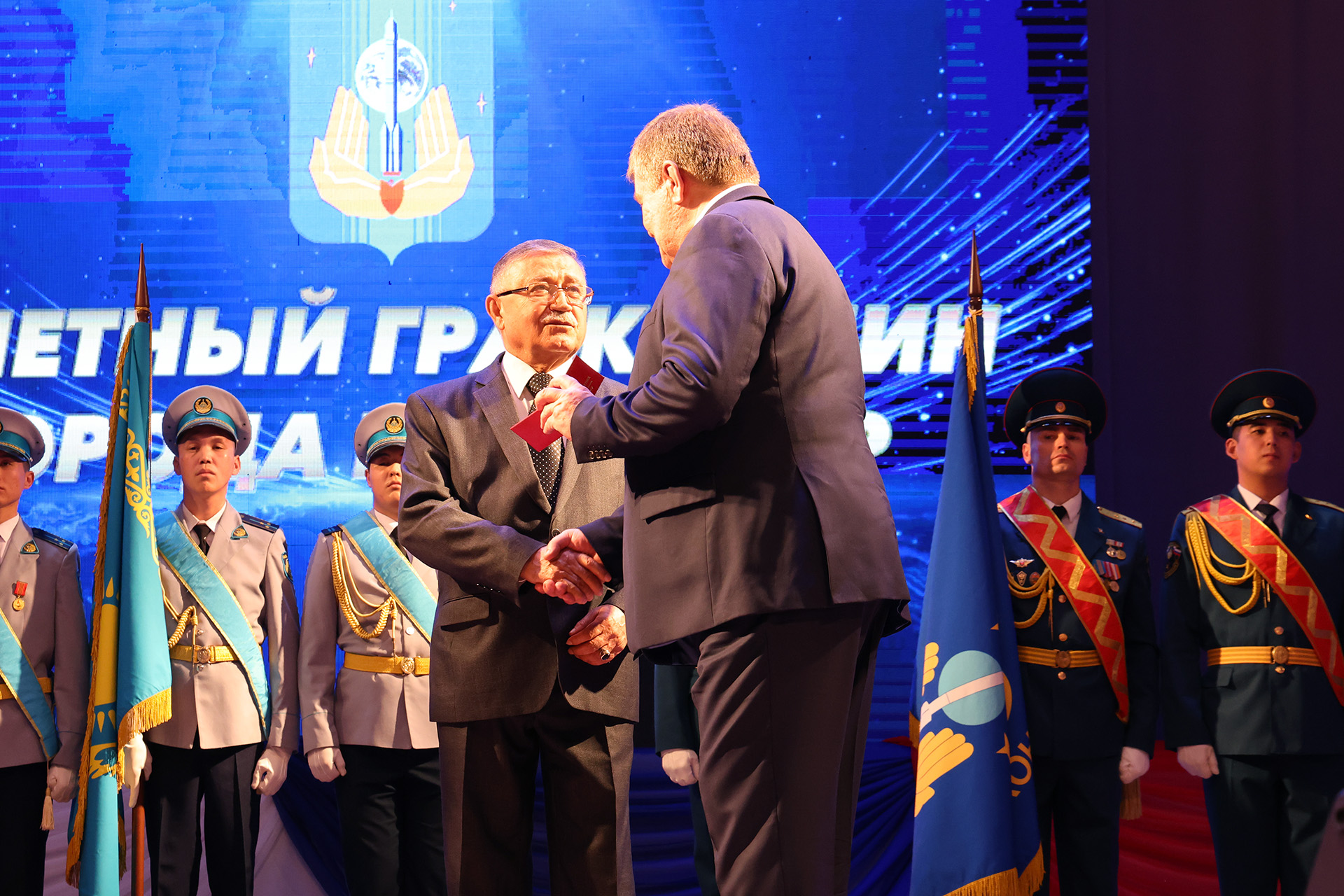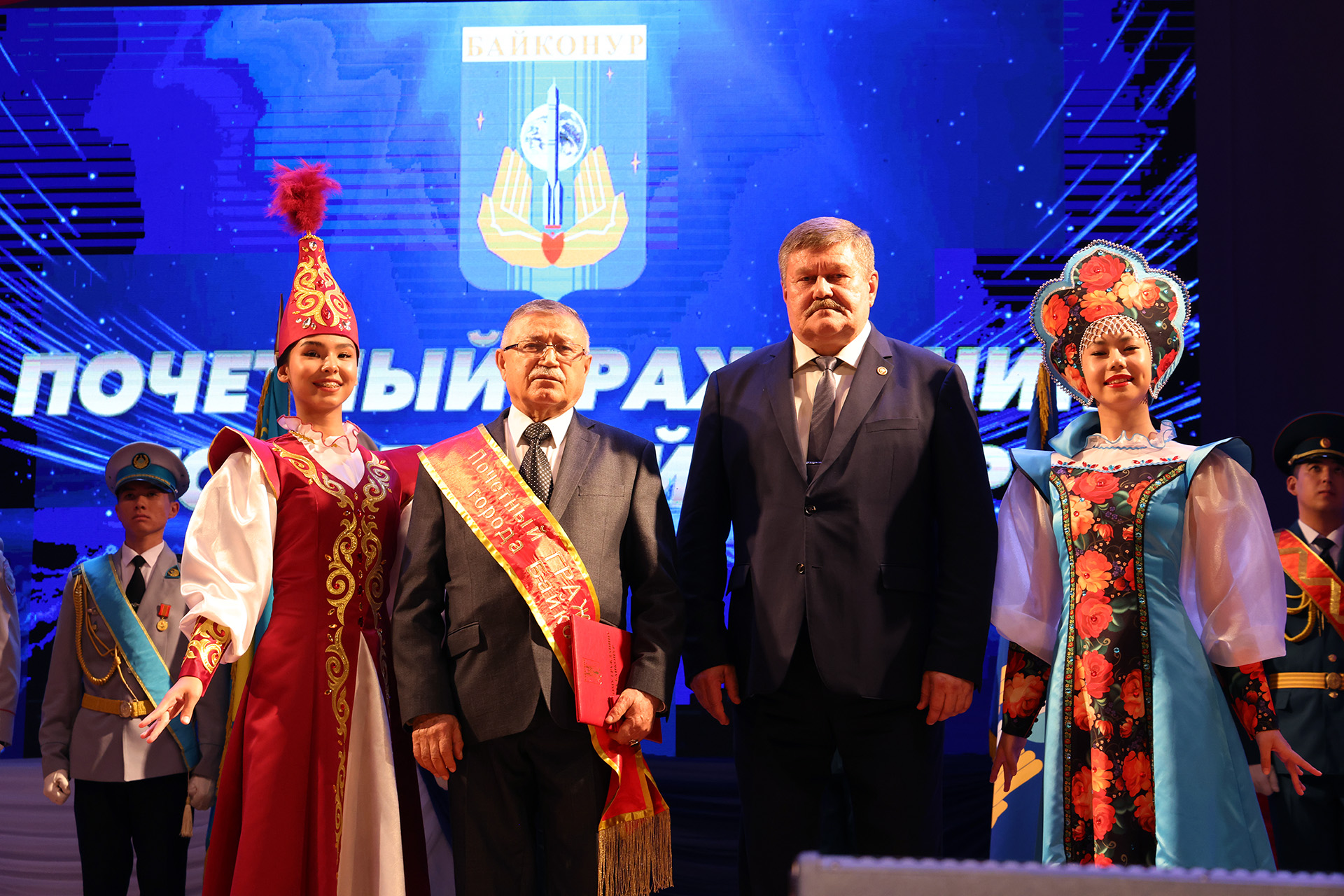Одним из ключевых моментов торжественного собрания стала церемония присвоения звания «Почетный гражданин города Байконур». В этом году за многолетний труд и верность традициям космодрома соответствующие знаки отличия и удостоверения были вручены Фазлиддину Ибрагимову, Олегу Кононенко, Виктору Кулепетову. Церемонию провел глава города.