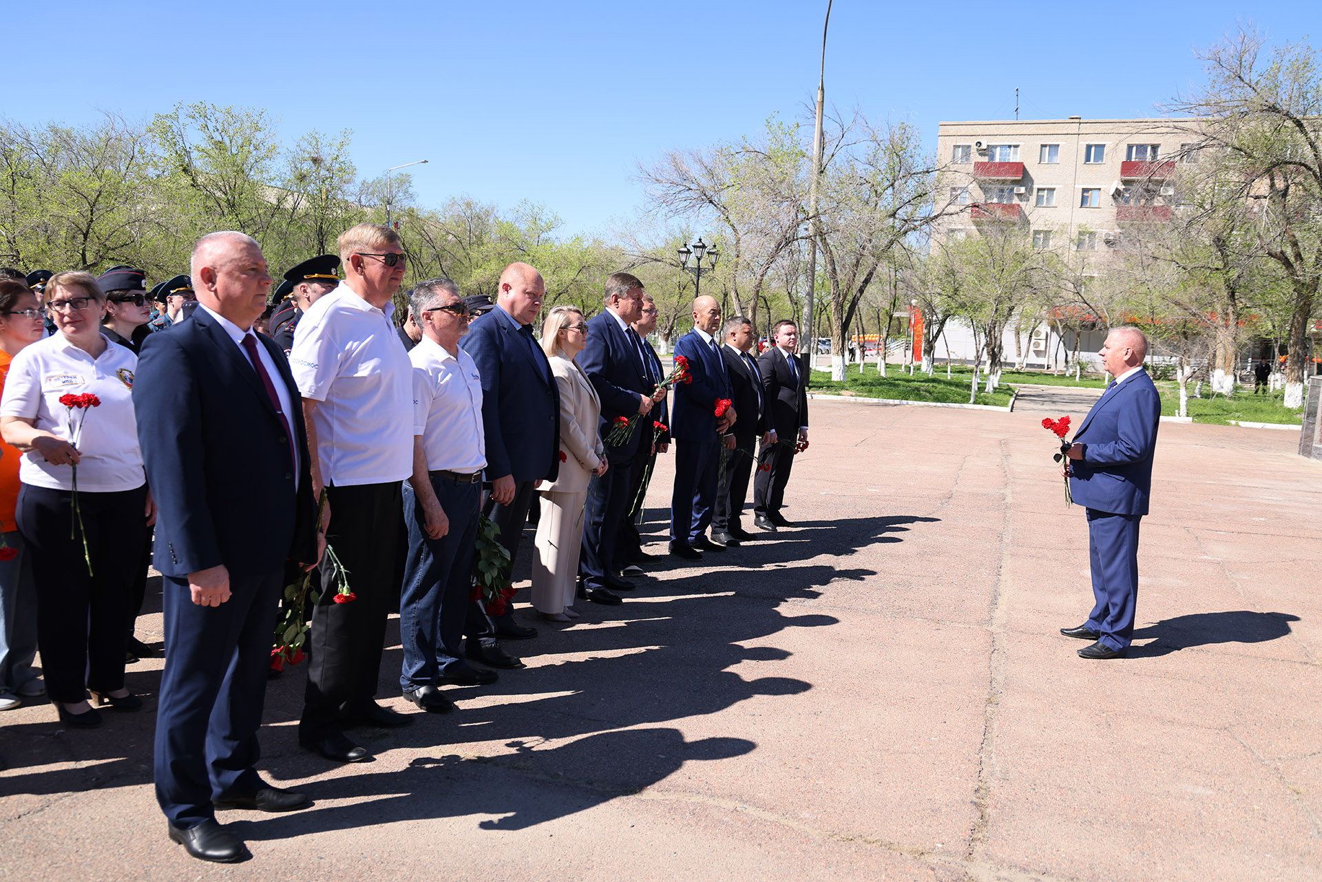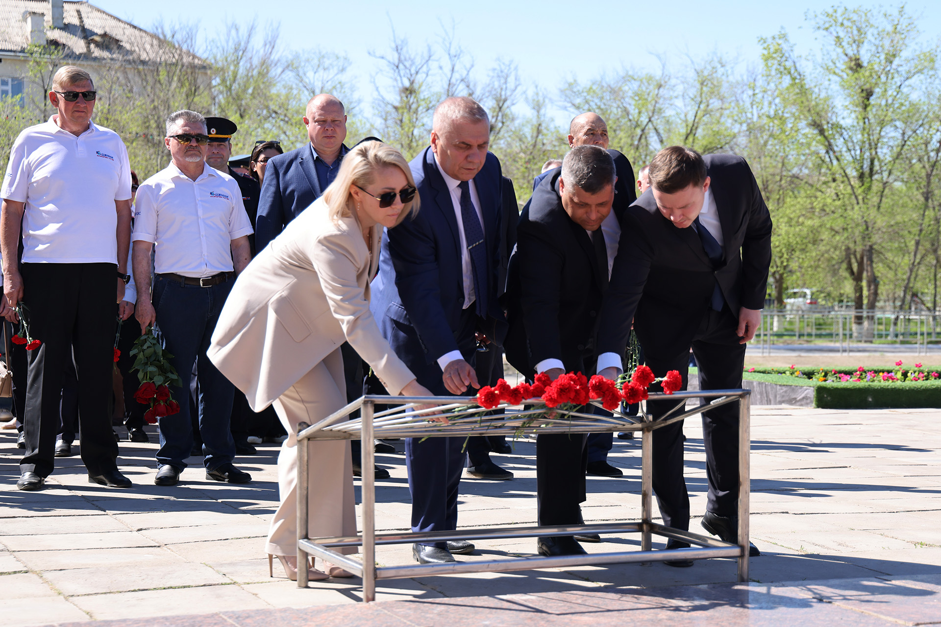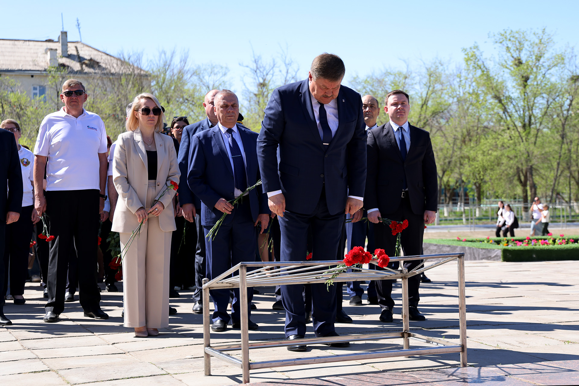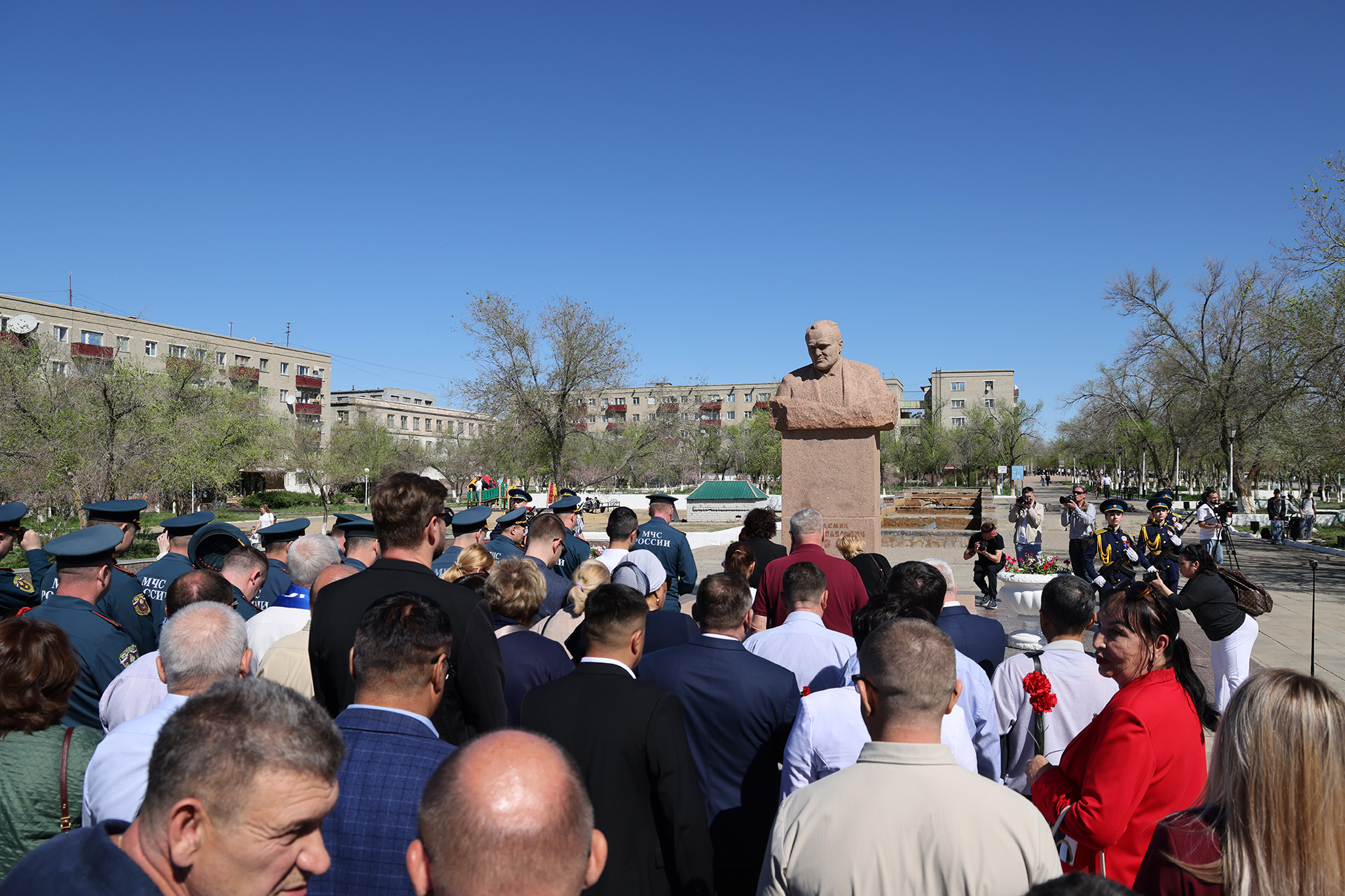 После завершения митинга у памятника Юрию Гагарину, участники праздничных мероприятий в честь 65-летия первого полета человека в космос перешли на площадь Королёва, где возложили цветы к бюсту выдающегося конструктора, создавшего ракету-носитель и космический корабль для полётов человека в космос.