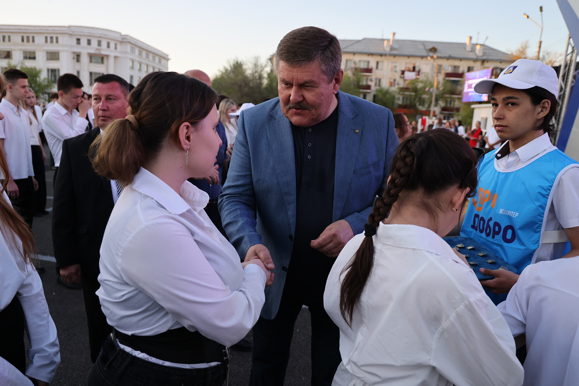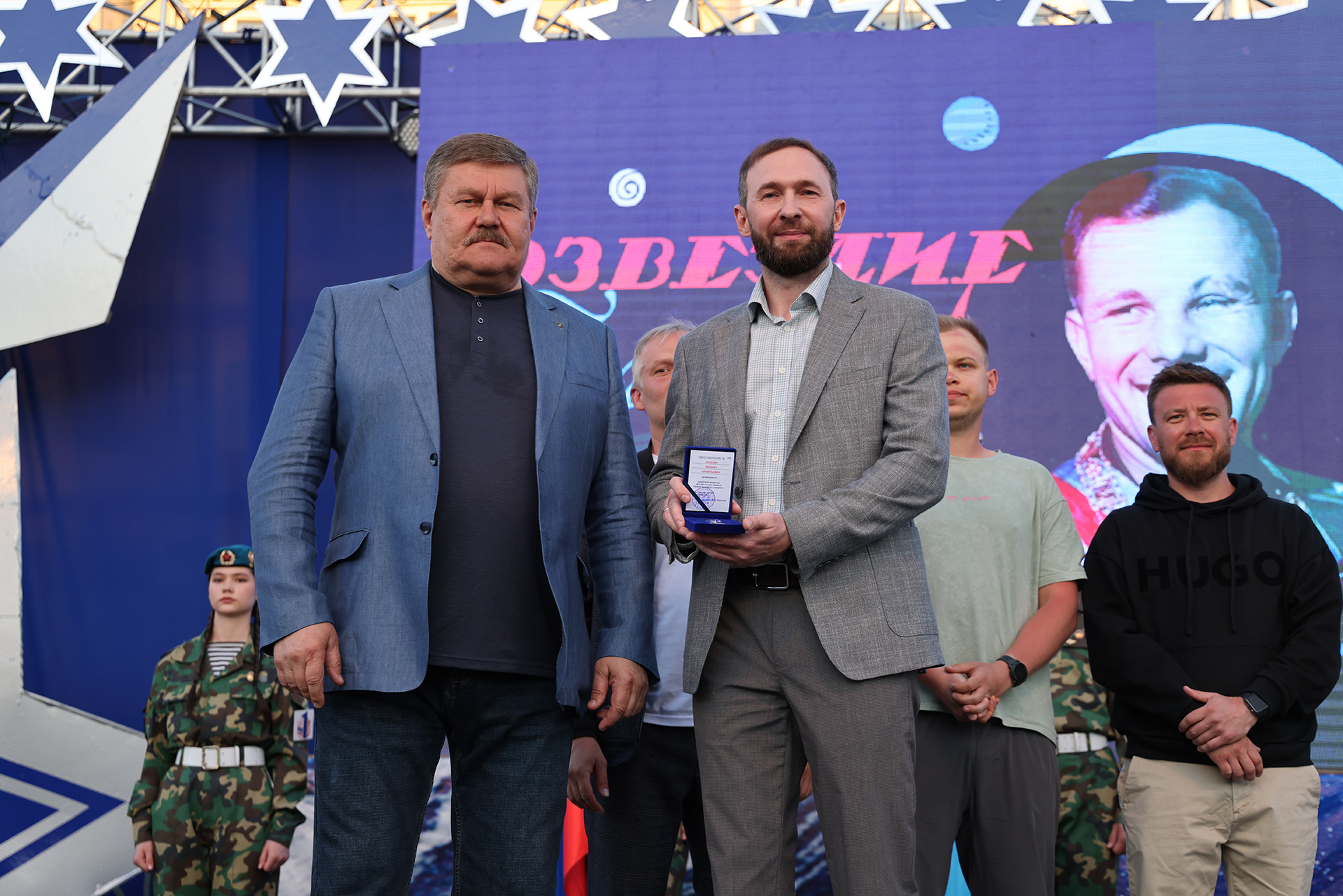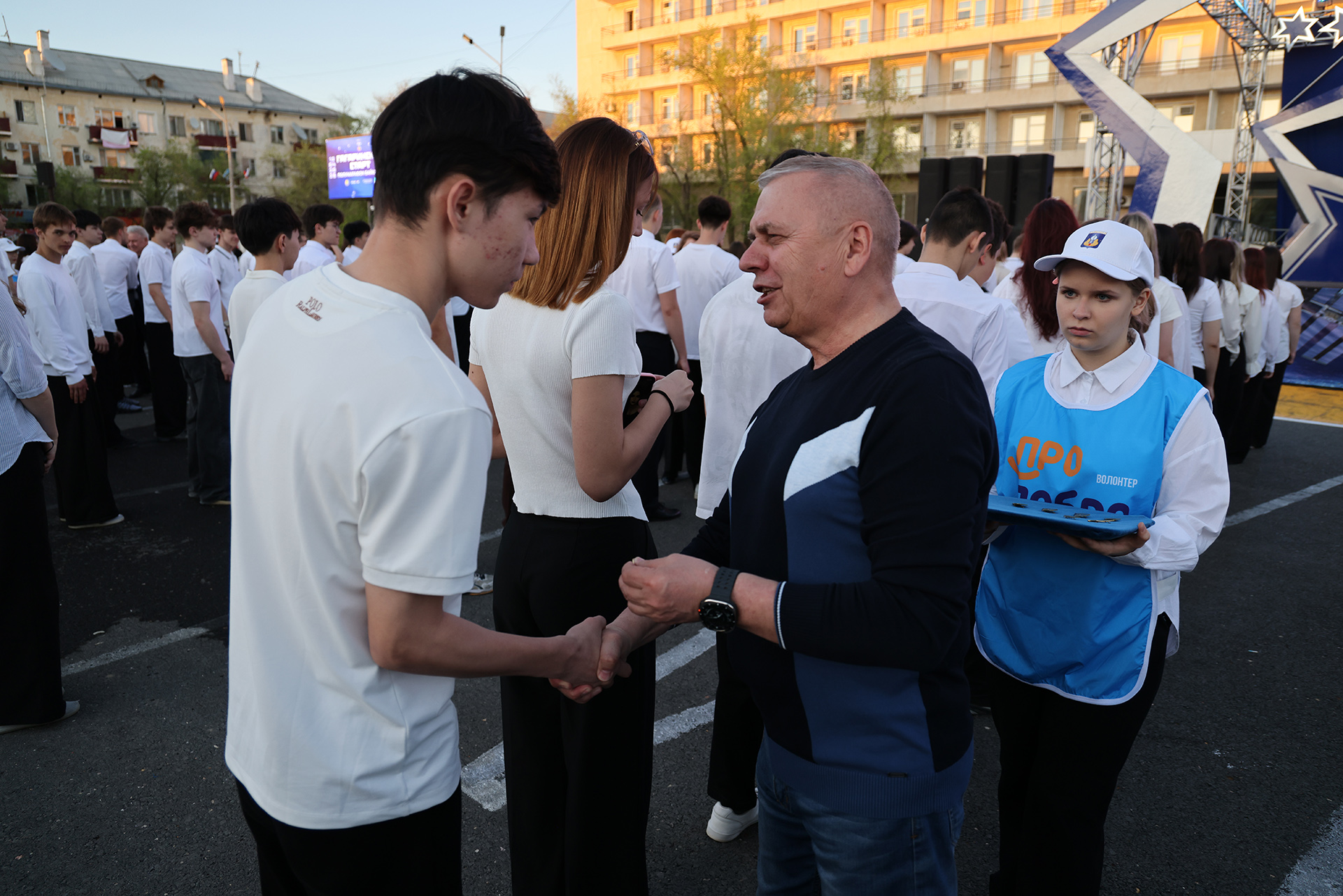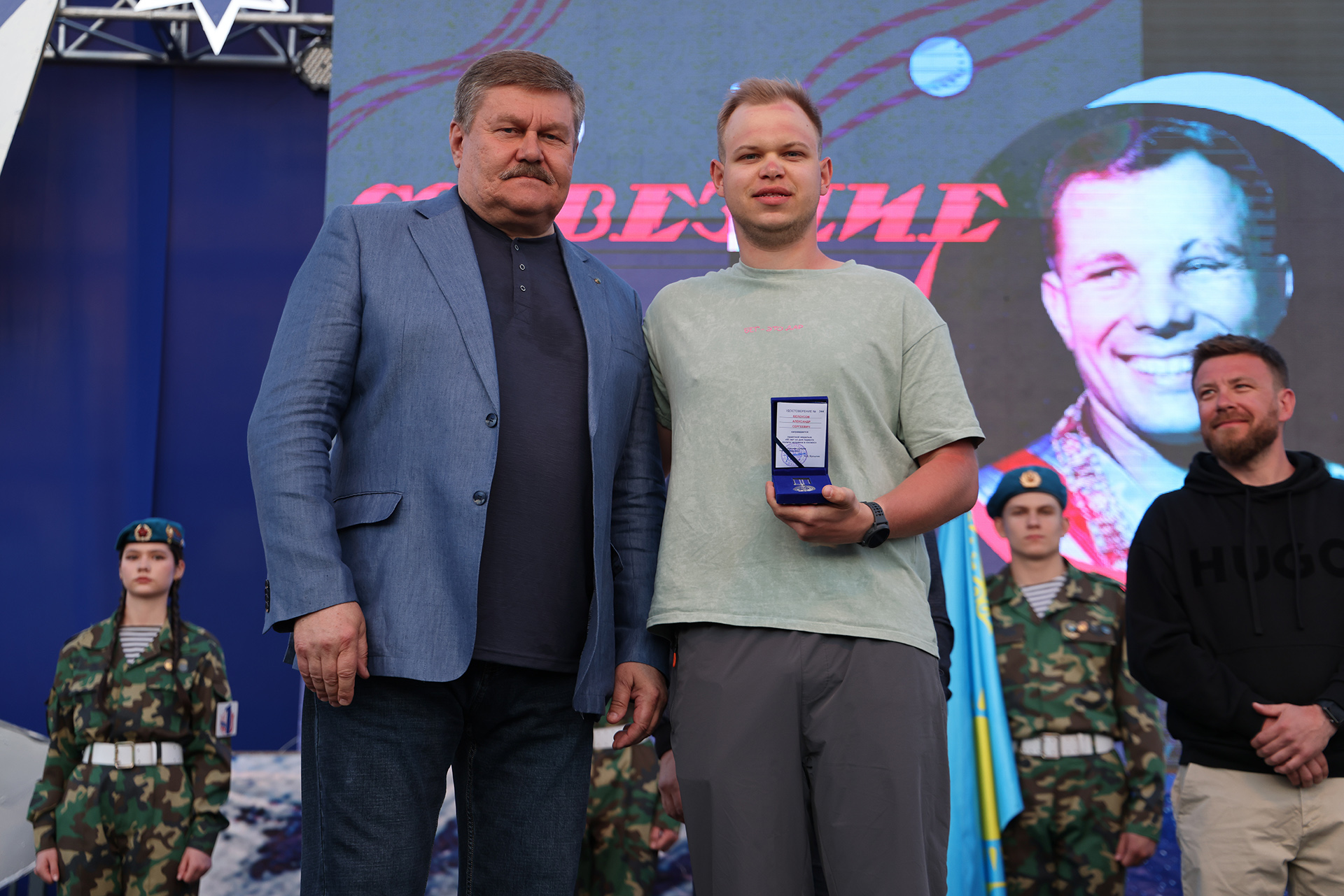 Особым моментом праздника стала торжественная церемония вручения отличительных знаков городского движения «Будущее Байконура». Около четырёх сотен школьников и студентов – представителей молодёжи, присоединились к Центру поддержки молодежных инициатив – массовому общегородскому движению социально активной молодёжи.