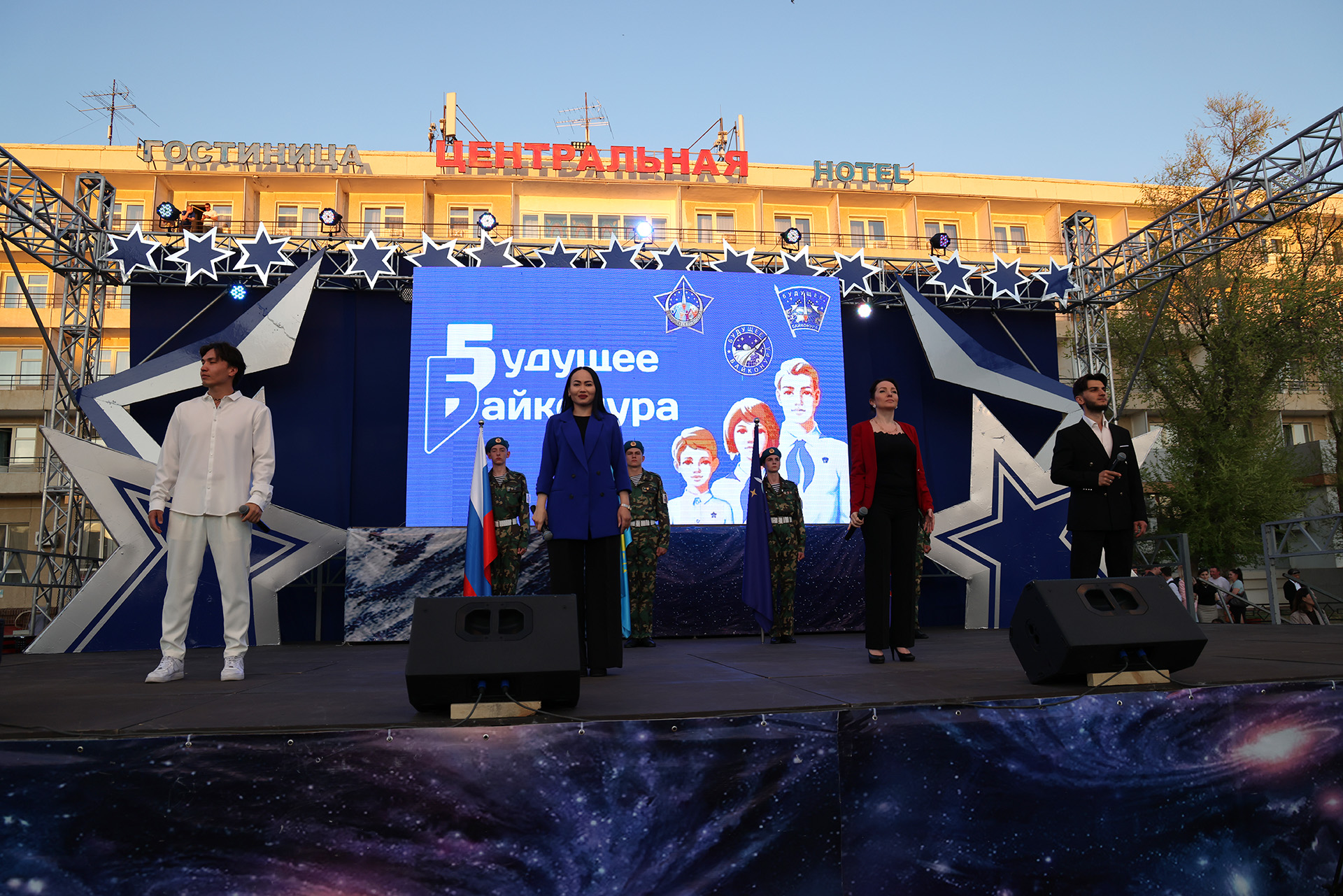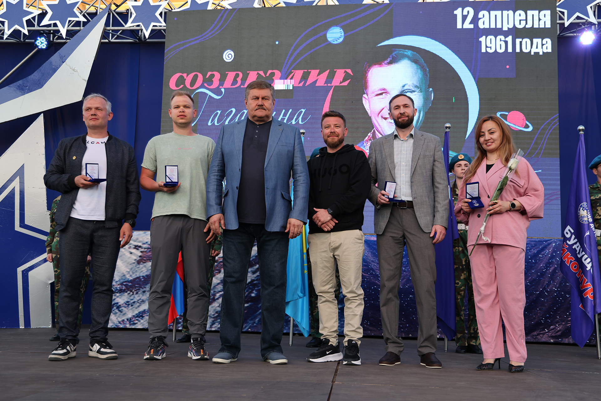 Праздничное мероприятие открыл глава администрации города Байконур Константин Бусыгин, обратившийся к жителям с поздравительной речью. Он отметил особую роль города в развитии мировой космонавтики и подчеркнул значимость подвига Юрия Гагарина, чьё легендарное «Поехали!» стало символом новой эпохи.