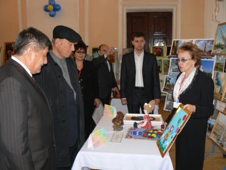 Есжанов Руслан, Исмуратов Темирлан, Сенкибаева Наурызгуль, Турмаханова Айдана – дети и подростки Отделения реабилитации детей и подростков с ограниченными физическими и умственными возможностями ГУ «КЦСОН». Представлены картины, выполненные с использованием природного материала, круп, макаронных изделий, мягкие игрушки.