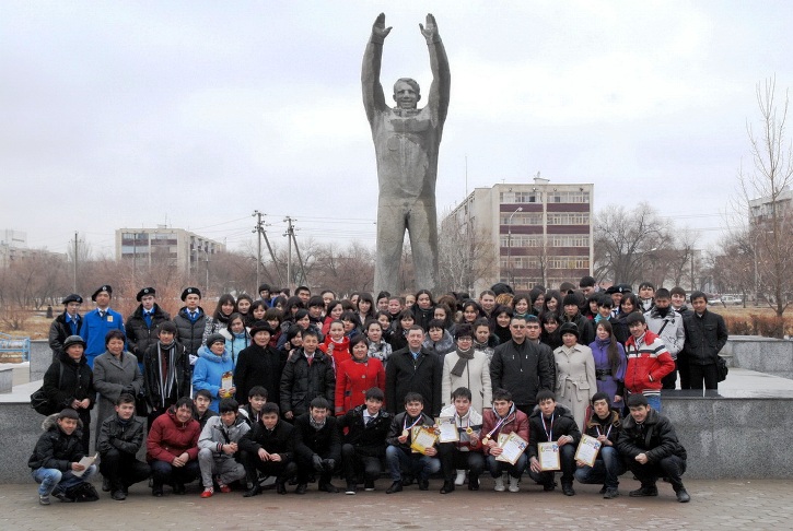 9 марта старшеклассники из средней школы №8, носящей имя Юрия Гагарина, приняли участие в торжественной линейке, посвященной дню рождения первого космонавта Земли. Линейка проходила у памятника Юрию Гагарину. Директор школы №8 Айна Жалиева напомнила ребятам основные вехи жизни прославленного космонавта. Председатель Общественного Совета самоуправления города Байконур Михаил Москалев отметил, что ученики восьмой школы должны стараться быть достойными «гагаринцами» и с гордостью нести это высокое звание по жизни. Он вручил медали победителям городских спортивных соревнований, которые были посвящены 50-летию полета в космос Юрия Гагарина, и пожелал ребятам дальнейших успехов и в спорте, и в учебе. В заключение линейки школьники и их наставники возложили цветы к памятнику Юрию Гагарину.