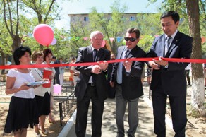 На новоселье заведующая детским садом «Апельсин» Евгения Гаврилова поблагодарила руководства города и сотрудников предприятия «Ремонт и строительство № 2» за великолепный подарок детям и их родителям. Традиционный атрибут новоселья – красную ленту - перерезали заместитель главы городской администрации Анатолий Петренко и специальный представитель Президента Республики Казахстан на комплексе «Байконур» Сабит Кожаметов. Новый детский сад, рассчитанный на 90 мест, начнет работу в сентябре.