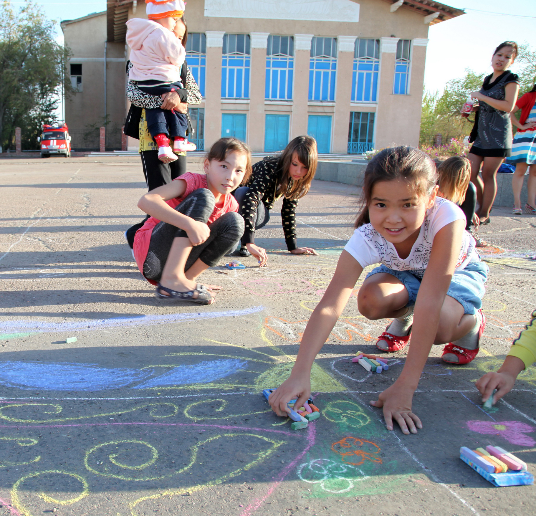 Детвора, пришедшая с родителями на площадь, с удовольствием приняла участие в конкурсе рисунка на асфальте «О Родине с любовью», юные спортсмены провели состязания по казахской национальной борьбе «Казахша Курез» в 13 весовых категориях. Победители получили заслуженные награды из рук почетных гостей праздника.