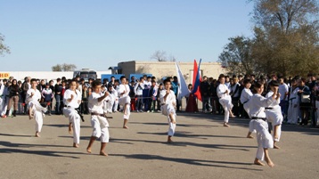Составной частью спортивного праздника стали показательные выступления членов городской федерации кик-боксинга и учащихся ДЮСШ, занимающихся в секциях тхэквондо и карате-до.