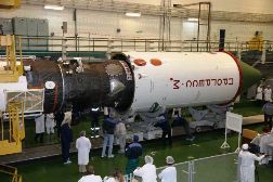 24 октября в монтажно-испытательном корпусе (МИК) пл.254 космодрома Байконур специалистами РКК «Энергия» была проведена стыковка корабля «Прогресс М-13М» с переходным отсеком.