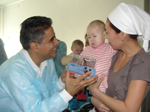 На минувшей неделе американские специалисты, работающие на космодроме Байконур по программе запуска космического аппарата «Sirius FM-6», посетили детское соматическое отделение больницы № 2. Представитель фирмы Spect Systеms LORAL Криспин Мендоза идиректор International Launch Systems (ILS) Том Салас со своими коллегами принесли детям, находящимся на лечении в детской соматике, несколько коробок с игрушками, канцелярскими принадлежностями и детской одеждой. Подарки были вручены детям и их мамам с пожеланиями скорейшего выздоровления. Начальник ЦМСЧ № 1 ФМБА России Владимир Шкуропат и руководители больницы показали гостям отделение, познакомили их с врачами. Во время беседы Криспин Мендоза сказал, что помогать больным детям он и его супруга решили после смерти от рака их семилетней дочери. Сейчас в семье Мендоза живут родные и приемные дети. Криспин, глубоко верующий человек, часто молится об исцелении больных детей. Подарки, переданные им байконурцам, это не только его дары, но и прихожан церкви, которую Криспин посещает у себя на родине.