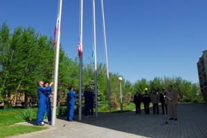 4 мая на Байконуре был дан официальный старт завершающему этапу подготовки экипажей 31/32 длительной экспедиции на МКС. Космонавтов, астронавтов и членов оперативной группы Центра подготовки космонавтом имени Ю.А.Гагарина на церемонии подъема флагов стран-участниц экспедиции приветствовали Глава администрации города Байконур Александр Мезенцев, руководитель управления Роскосмоса по космодрому Байконур Евгений Анисимов, директор Департамента космодрома Байконур Национального космического агентства Республики Казахстан Галымжан Данбаев.