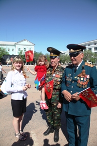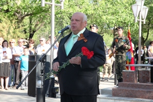 Открыл митинг Глава администрации города Байконур Александр Мезенцев. Он поздравил присутствующих с Днем победы и подчеркнул, что космодром Байконур создавали фронтовики и теперь нынешнее поколение испытателей ракетно-космической техники - наследники Победы - отвечает за легендарный космический порт.