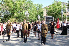Вечером на площади прошла большая праздничная концертная программа, в которой лучшие творческие коллективы и вокалисты города поздравили байконурцев с Днем Великой Победы. При большом стечении горожан состоялась торжественная акция «Минута молчания».