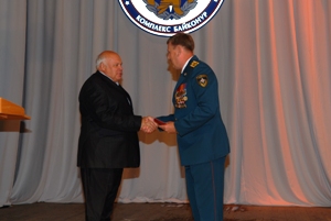 На общегородском собрании были зачитаны приказы Министра МЧС России. Одним из них Глава администрации города Байконур Александр Мезенцев был награжден медалью «За особый вклад в обеспечение пожарной безопасности особо важных государственных объектов», ряд сотрудников Управления также был отмечен ведомственными наградами и присвоением очередных званий. Сотрудники Управления в концертной программе приняли самое активное участие, продемонстрировав множество талантов и креатива.