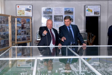 У макета города, расположенного на третьем этаже городской администрации, зашел разговор о городских объектах. Олег Фролов заинтересовался недавно построенной мечетью и православным храмом, Международной космической школой, отметил хорошее состояние байконурских дорог, похвалил благоустроенность города, а так же бассейн «Орион», где он успел побывать рано утром.