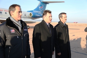 В аэропорту «Крайний» комплекса «Байконур» космонавтов и астронавтов встречали представители Роскосмоса, филиала ФГУП «ЦЭНКИ» - Космического центра «Южный», ОАО «РКК «Энергия им. С.П.Королева» и администрации города Байконур.