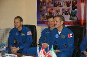 Его отец, советский космонавт Юрий Романенко пожелал экипажу счастливого полета. "Вы выполняете тяжелую работу, в том числе научную, в интересах не только своей страны, но и всего человечества. Пусть у вас все проходит штатно", - сказал он. Представители поисково-спасательного отряда на космодроме Байконур также поздравили экипаж с предстоящим полетом, пожелали им успехов и спели для них песню на английском языке. Р.Романенко, поблагодарив их, сказал, что члены экипажа сочинят на МКС пару песен под руководством К.Хатфилда, который увлекается музыкой.