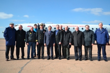 В аэропорту «Крайний» членов основного экипажа встречали представители администрации города Байконур, Роскосмоса, филиала ФГУП «ЦЭНКИ» - Космического центра «Южный», ОАО «РКК «Энергия им. С.П.Королева».