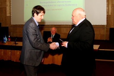 Глава городской администрации Александр Мезенцев вручил начальнику государственного бюджетного учреждения «Спортивно-оздоровительного комплекса «Байконур»» (ГБУ «СОК «Байконур») Евгению Гертеру нагрудный знак «Отличник физической культуры и спорта» Министерства спорта РФ, которым он удостоен за многолетнюю плодотворную работу и успехи в развитии физической культуры и спорта.
