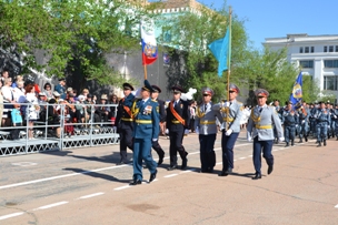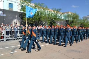 Ровно в 10 часов начался парад сотрудников российских и казахстанских силовых структур, которым командовал полковник Барыбин. В парадном прохождении приняли участие подразделения Управления Министерства внутренних дел России комплекса «Байконур», Специального управления Федеральной противопожарной службы № 70 МЧС России, представительства Министерства внутренних дел Республики Казахстан в городе Байконыр, учащиеся специализированных классов «Пожарный кадет», действующих в средней школе № 4, участники военно-патриотического клуба «Космодром», многократные победители Всероссийских сборов и военно-спортивной игры «Победа», а так же юноармейские команды городских образовательных учреждений. Замыкала шествие колонна членов регионального отделения общественной организации «Боевое братство».