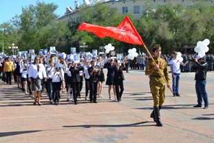 Затем на площадь вышла колона участников общероссийской акции «Бессмертный полк», главная задача которой - сохранение в каждой семье памяти о солдатах Великой Отечественной войны. Школьники с фотографиями фронтовиков, родных и близких военного поколения, ветеранов, дедов и прадедов, встал в ряды "Бессмертного полка".