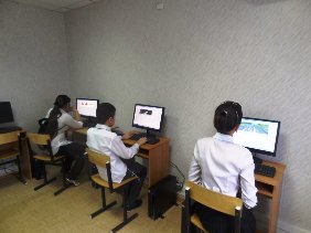 Дети посидели за компьютерами в классе для сдачи экзаменов по правилам дорожного движения на получение водительского удостоверения.