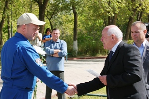 Сегодня члены дублирующего экипажа 37/38 экспедиции на МКС совершили экскурсию по городу, ставшую традиционной для космонавтов-дублеров. В сквере имени Юрия Гагарина экипаж из сотрудников Центра подготовки космонавтов приветствовал исполняющий обязанности Главы городской администрации Анатолий Петренко, который вручил российскому космонавту Олегу Артемьеву и астронавту НАСА Стивену Свонсону серебряные памятные знаки «Байконур» в знак посещения космической гавани.