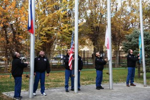 27 октября в Испытательном учебно-тренировочном комплексе НИИ ЦПК им. Ю.А.Гагарина была проведена традиционная церемония поднятия государственных флагов государств, участвующих в реализации программы полета экипажей 38/39-й длительной экспедиции на МКС.